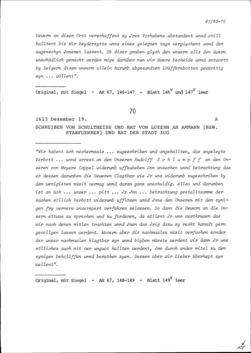 Schreiben des Schultheiss und Rats Luzern an Statthalter und Rat der Stadt Zug