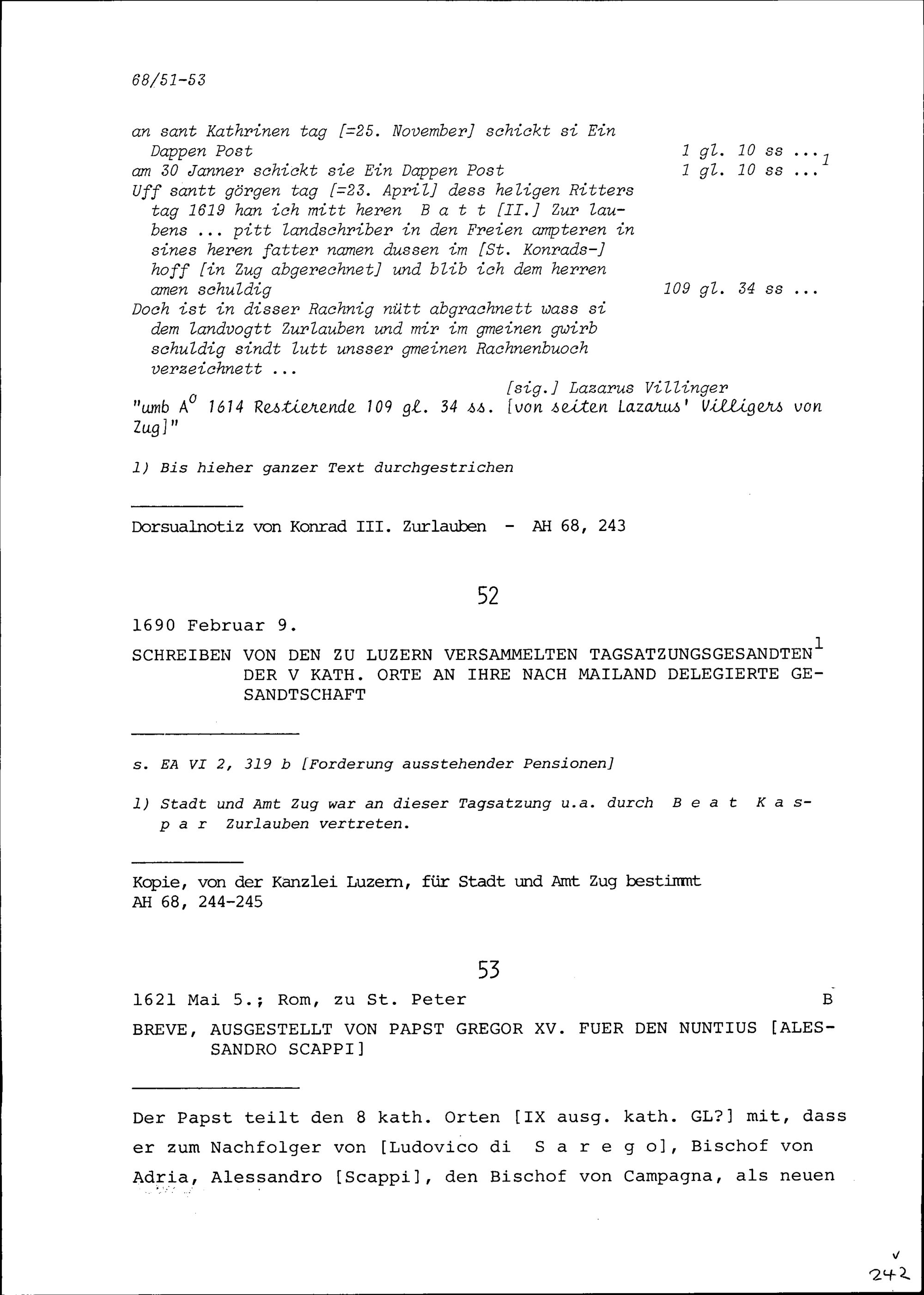 Abrechnung des Lazarus Villiger von Zug mit Konrad III. Zurlauben