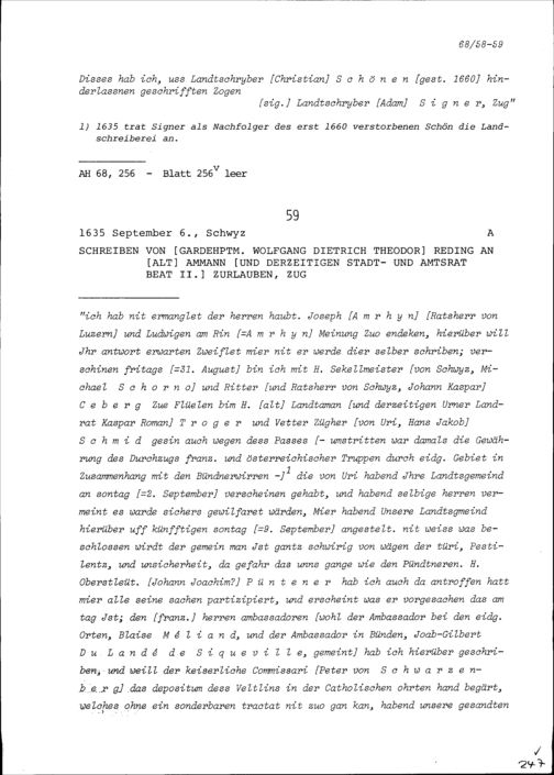 Ausstehende französische Pensionen für Ammann und Rat von Stadt und Amt Zug