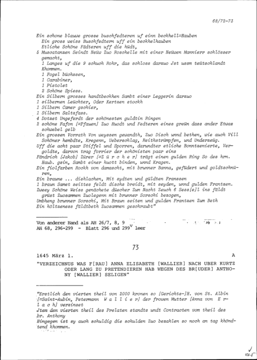 Inventar der Hinterlassenschaft von Franz Zurlauben, Gardehauptmann