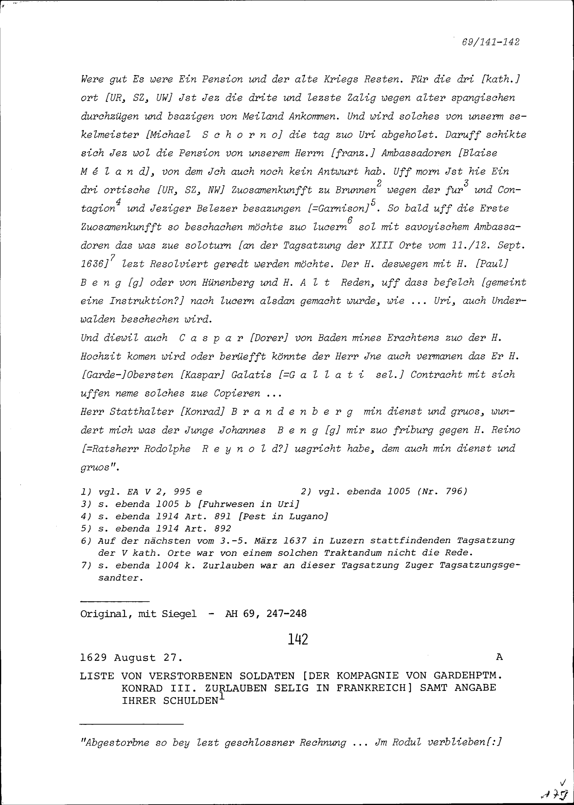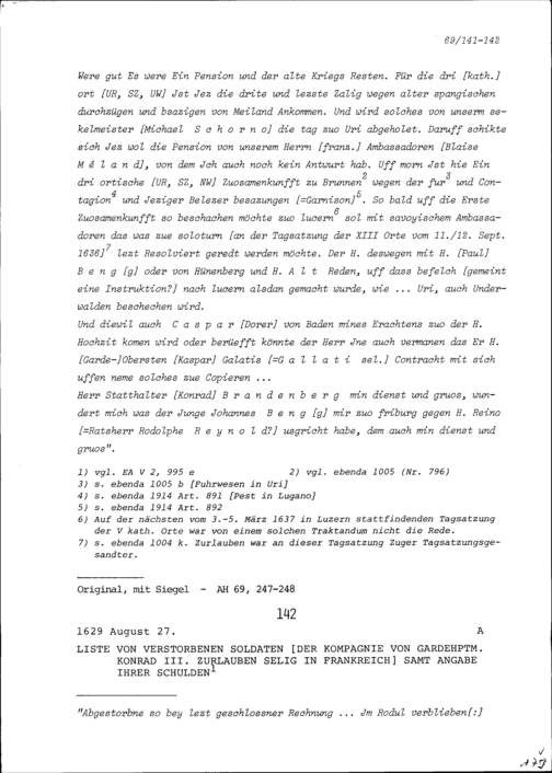 Schreiben von Johann Kaspar Ceberg, Ratsherr, an Beat II. Zurlauben, Hauptmann und...