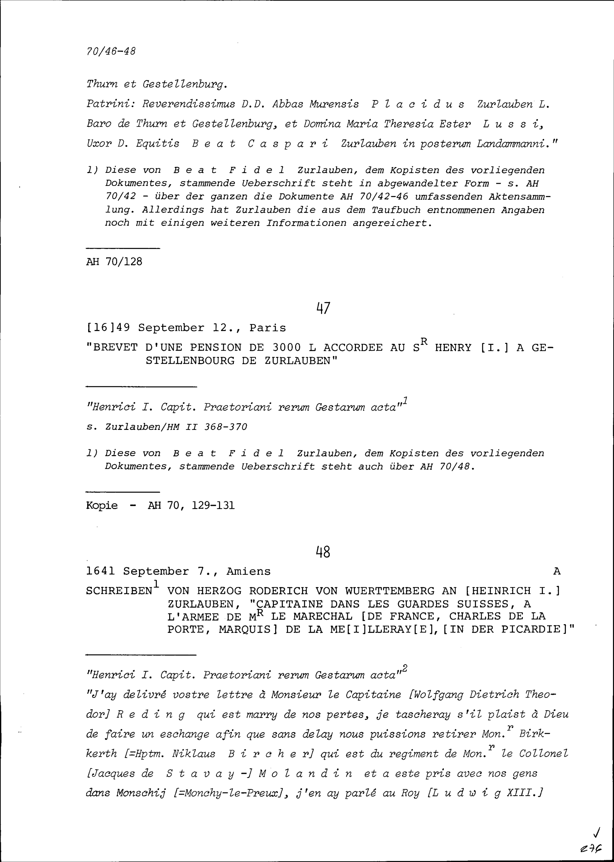 Schreiben von Roderich von Württemberg, Herzog, an Heinrich I. Zurlauben, in der Picardie