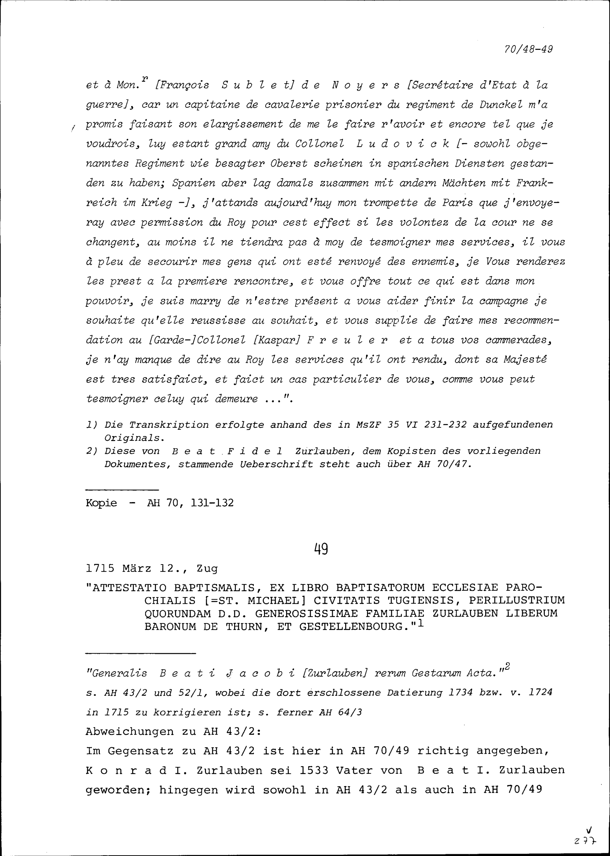 Schreiben von Roderich von Württemberg, Herzog, an Heinrich I. Zurlauben, in der Picardie