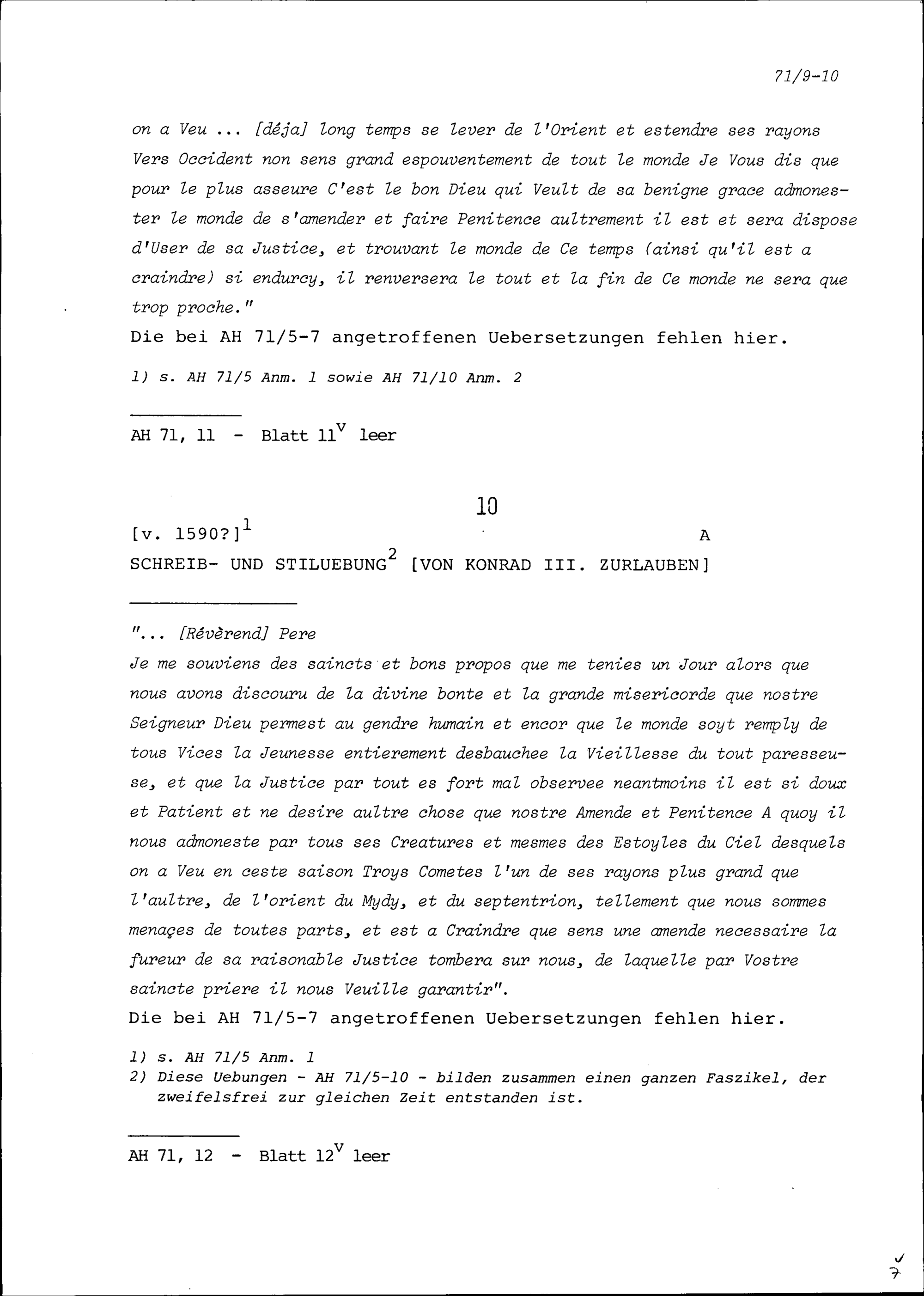 Schreib- und Stilübung von Konrad III. Zurlauben