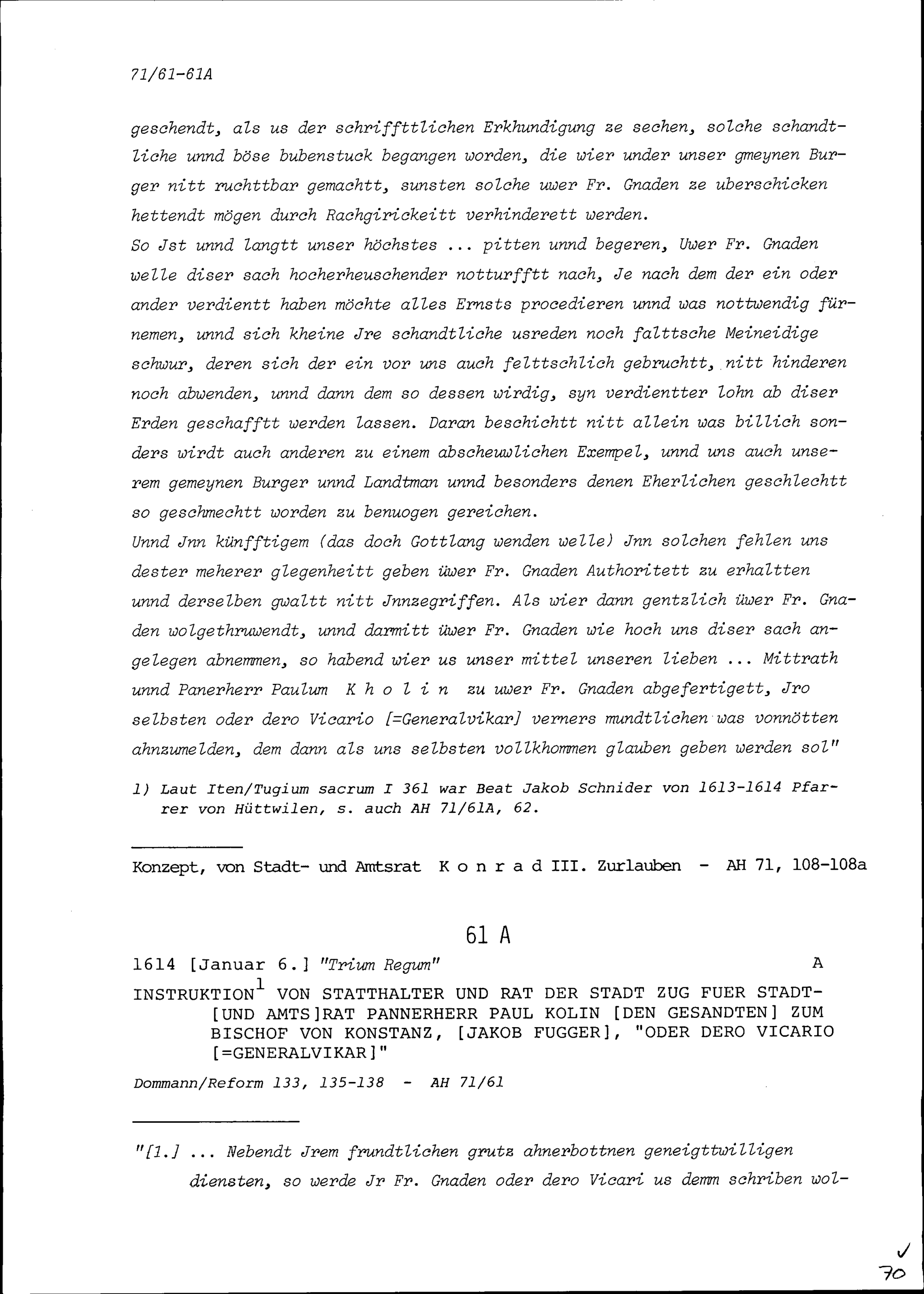 Schreiben des Statthalters und Rats der Stadt Zug an Jakob Fugger, Bischof von Konstanz