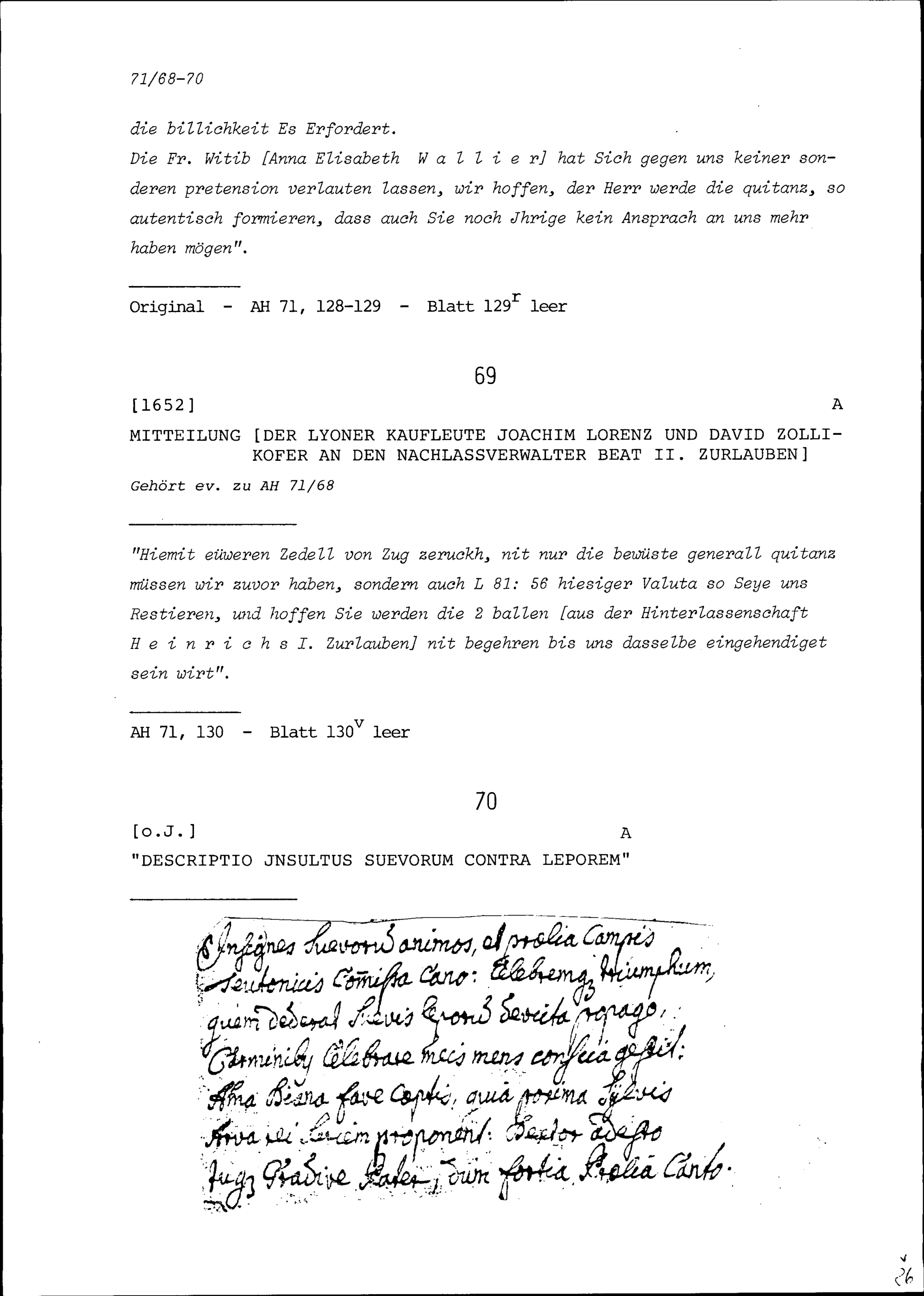 Acta Helvetica, Band 71