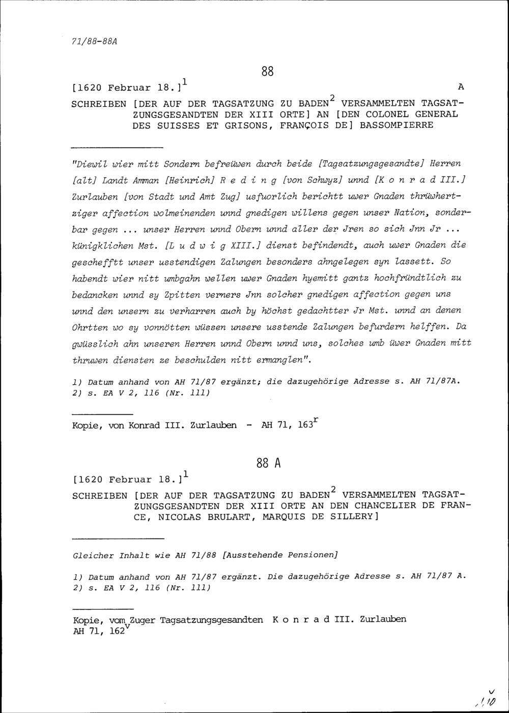 Schreiben der Tagsatzungsgesandten der Dreizehn Orte in Baden an Nicolas Brûlart, Marquis de Sillery, Kanzler von Frankreich