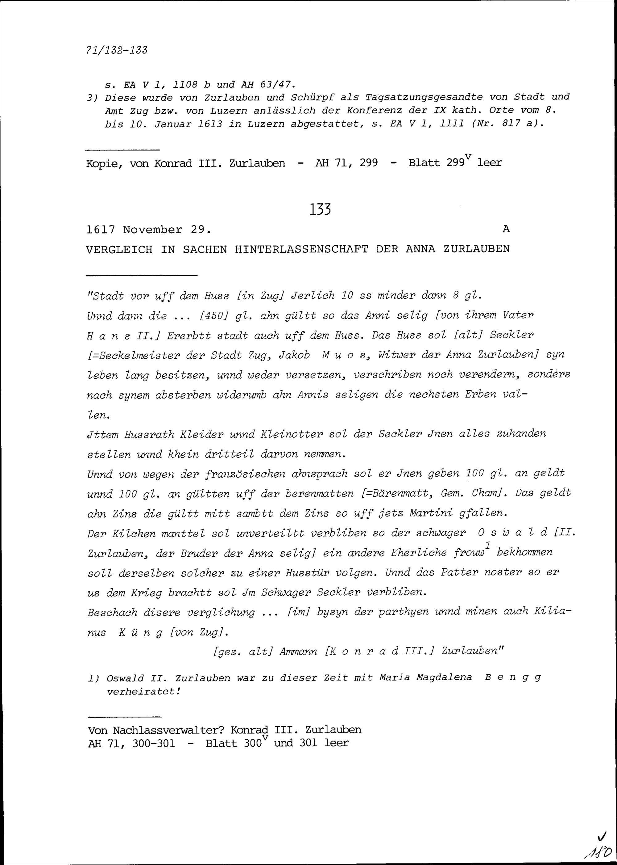 Schreiben des Ammanns und Rats von Stadt und Amt Zug an Pierre Jeannin de Castille,...