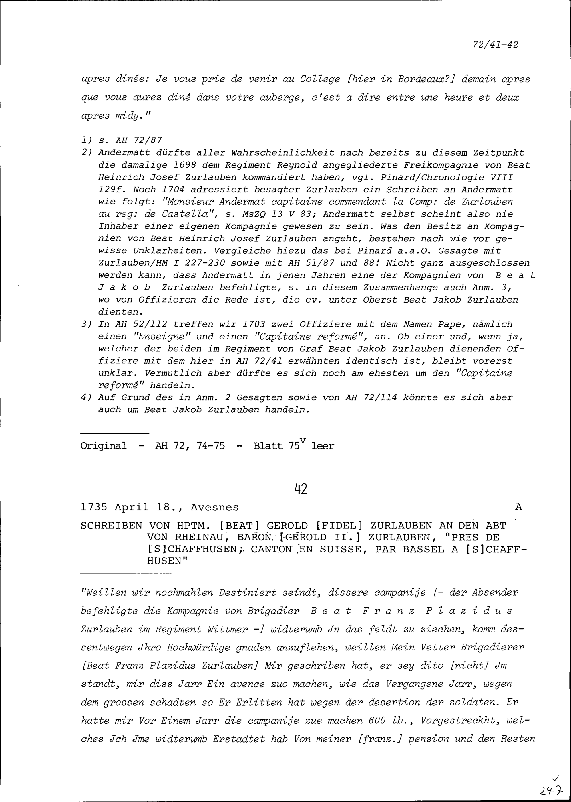 Schreiben eines Offiziers an Ägid Franz Andermatt, Hauptmann der Schweizer Kompanie in Château Trompette, Bordeaux
