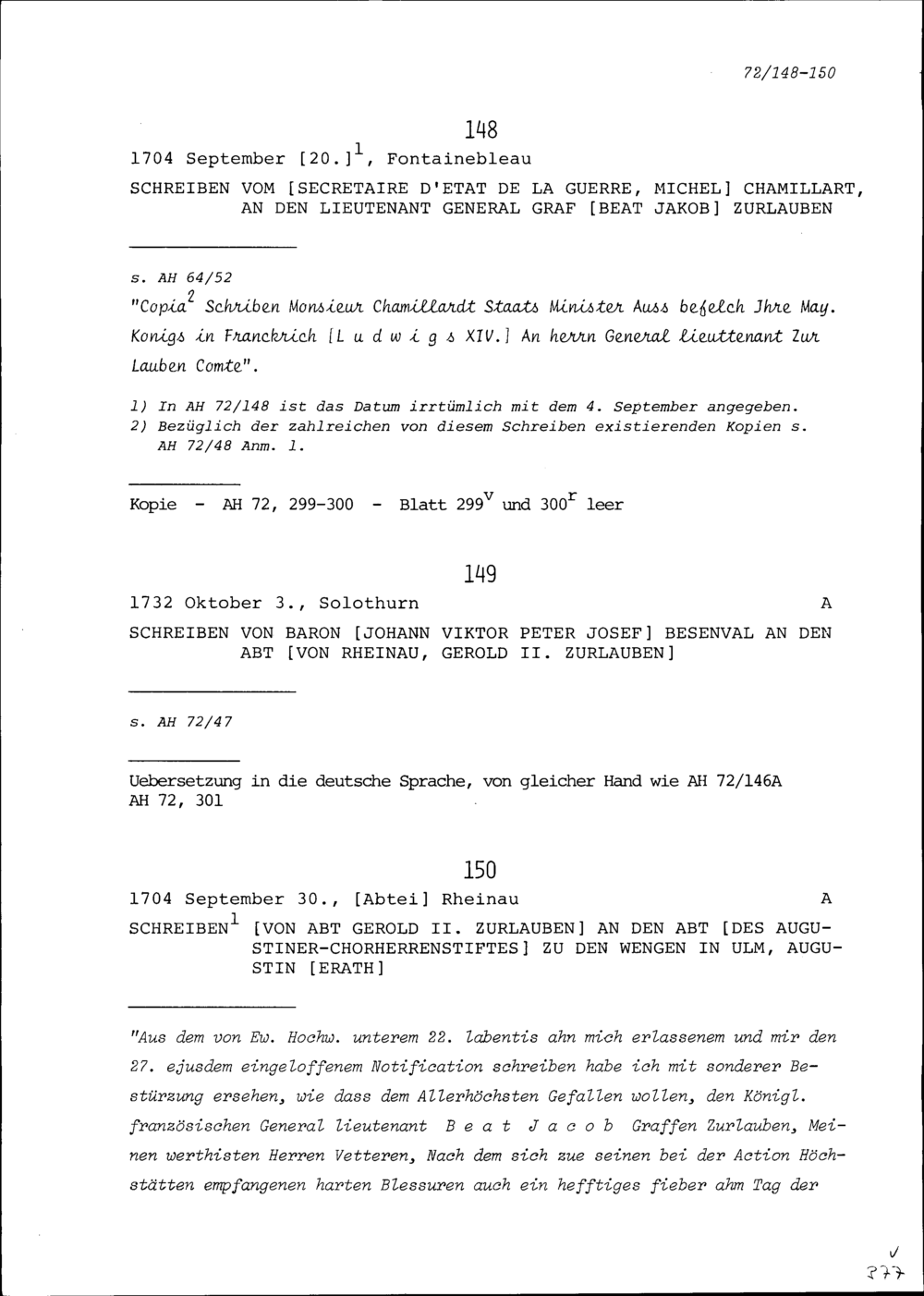 Schreiben von Johann Viktor Peter Josef Besenval, Baron, an Gerold II. Zurlauben, Abt von Rheinau