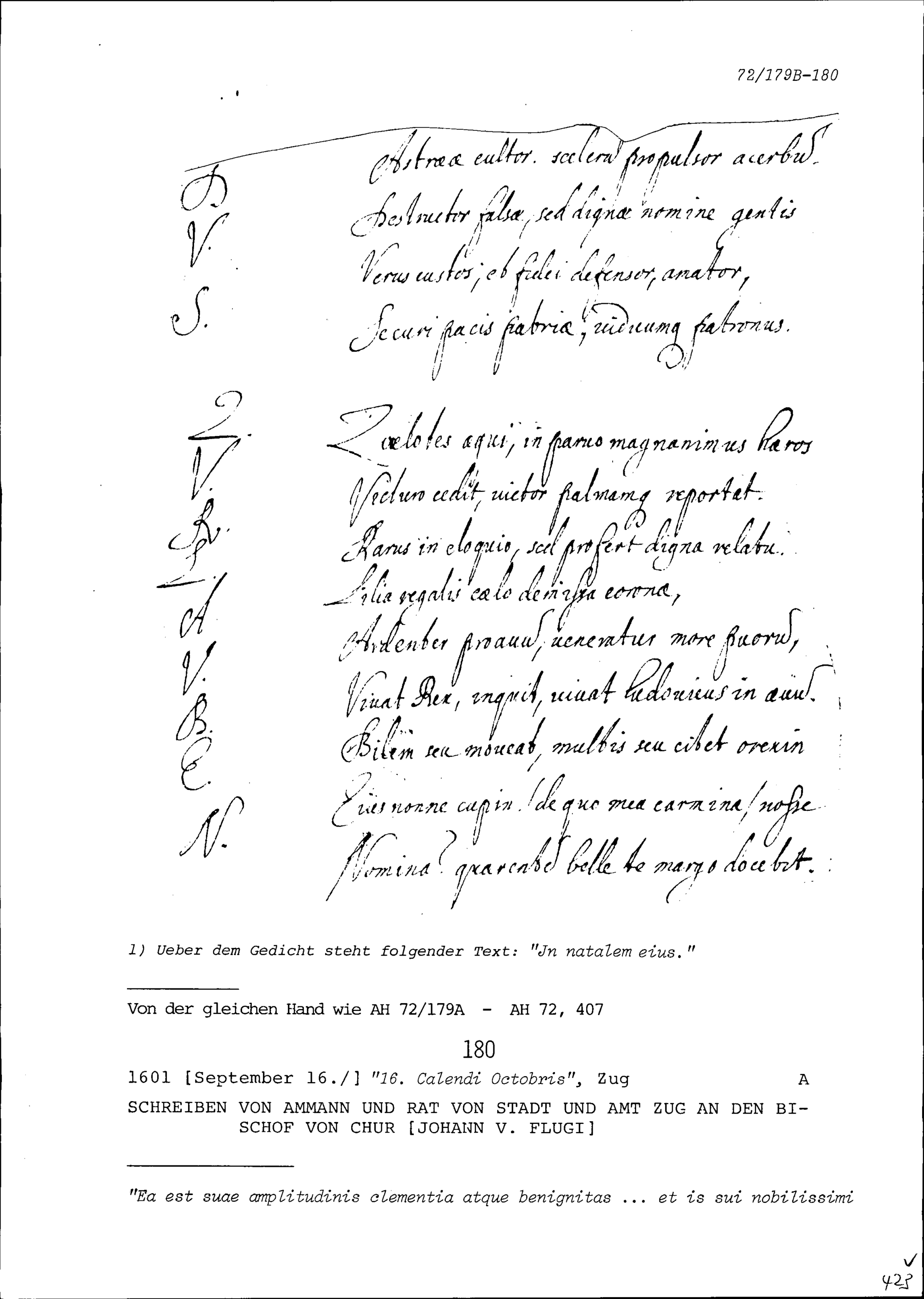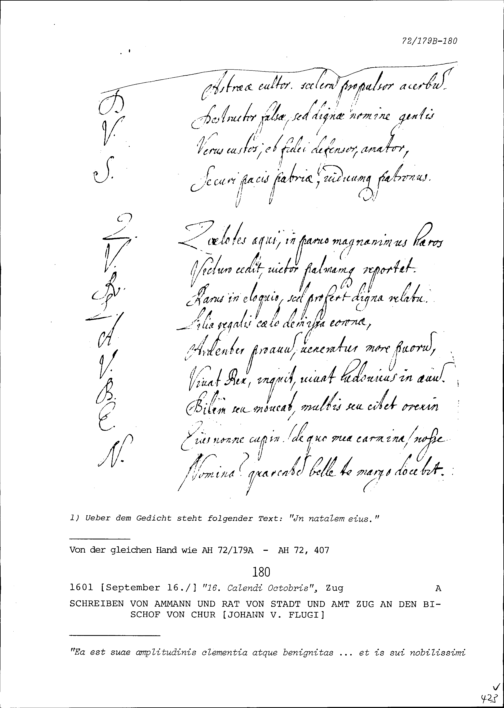Gedicht in lateinischer Sprache zum Geburtstag von Konrad III. Zurlauben