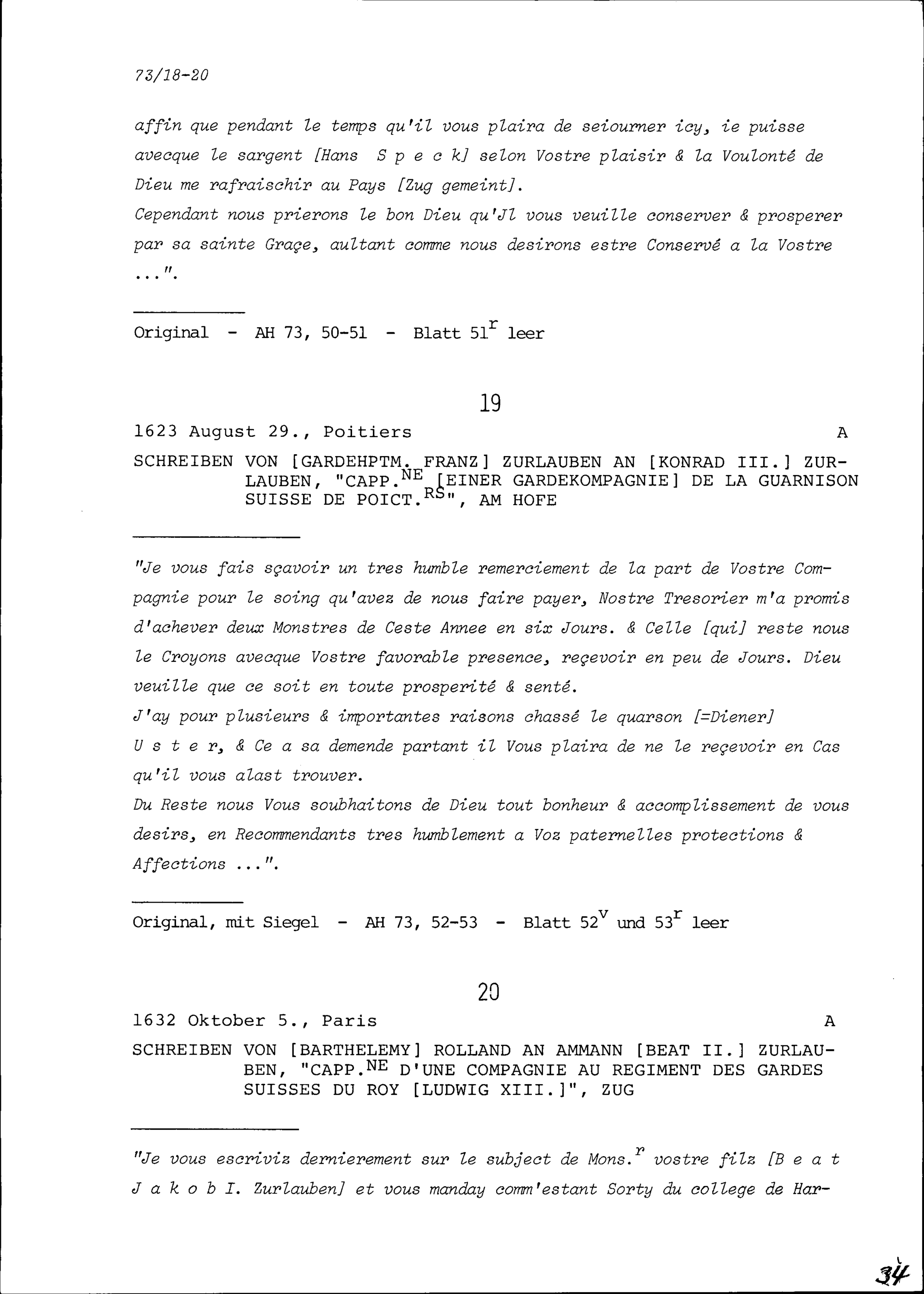 Schreiben von Franz Zurlauben, Gardehauptmann, an Konrad III. Zurlauben, Gardehauptmann,...