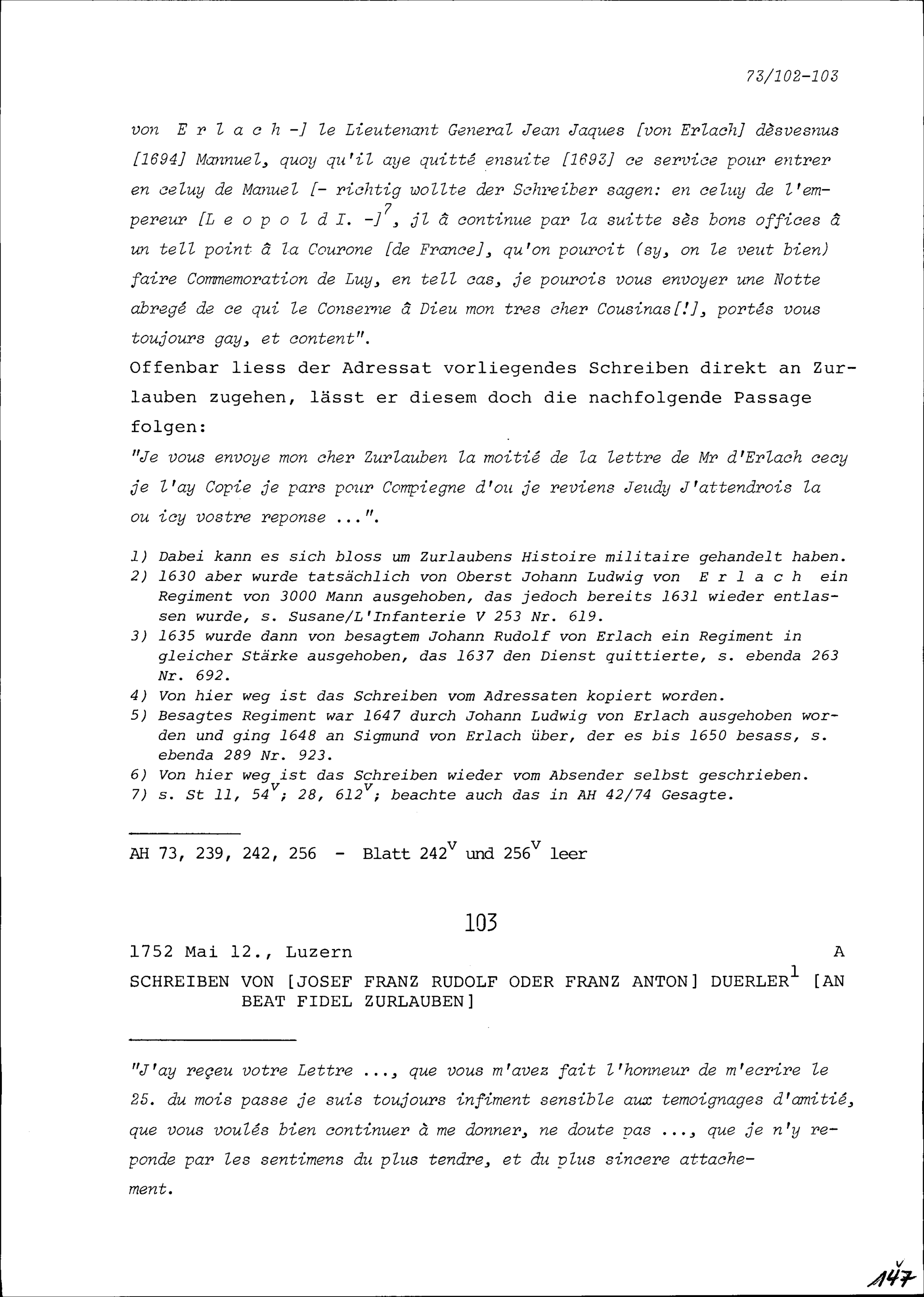 Schreiben von Albrecht Friedrich von Erlach an Abraham von Erlach, Gardehauptmann