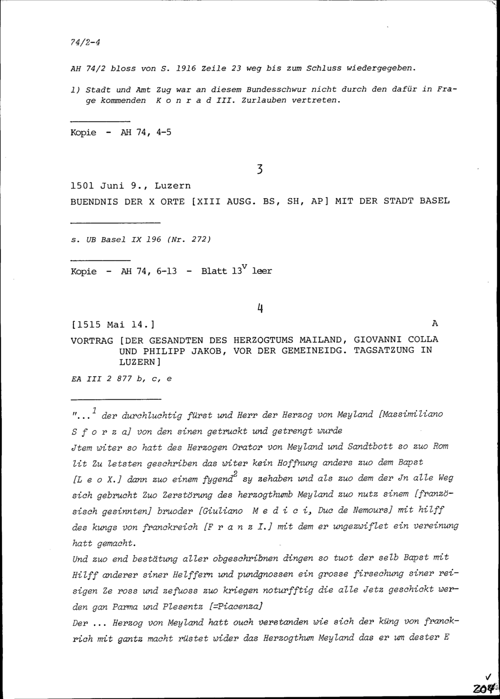 Vortrag von Giovanni Colla und von Philipp Jakob, beide Gesandte des Herzogtums Mailand,...