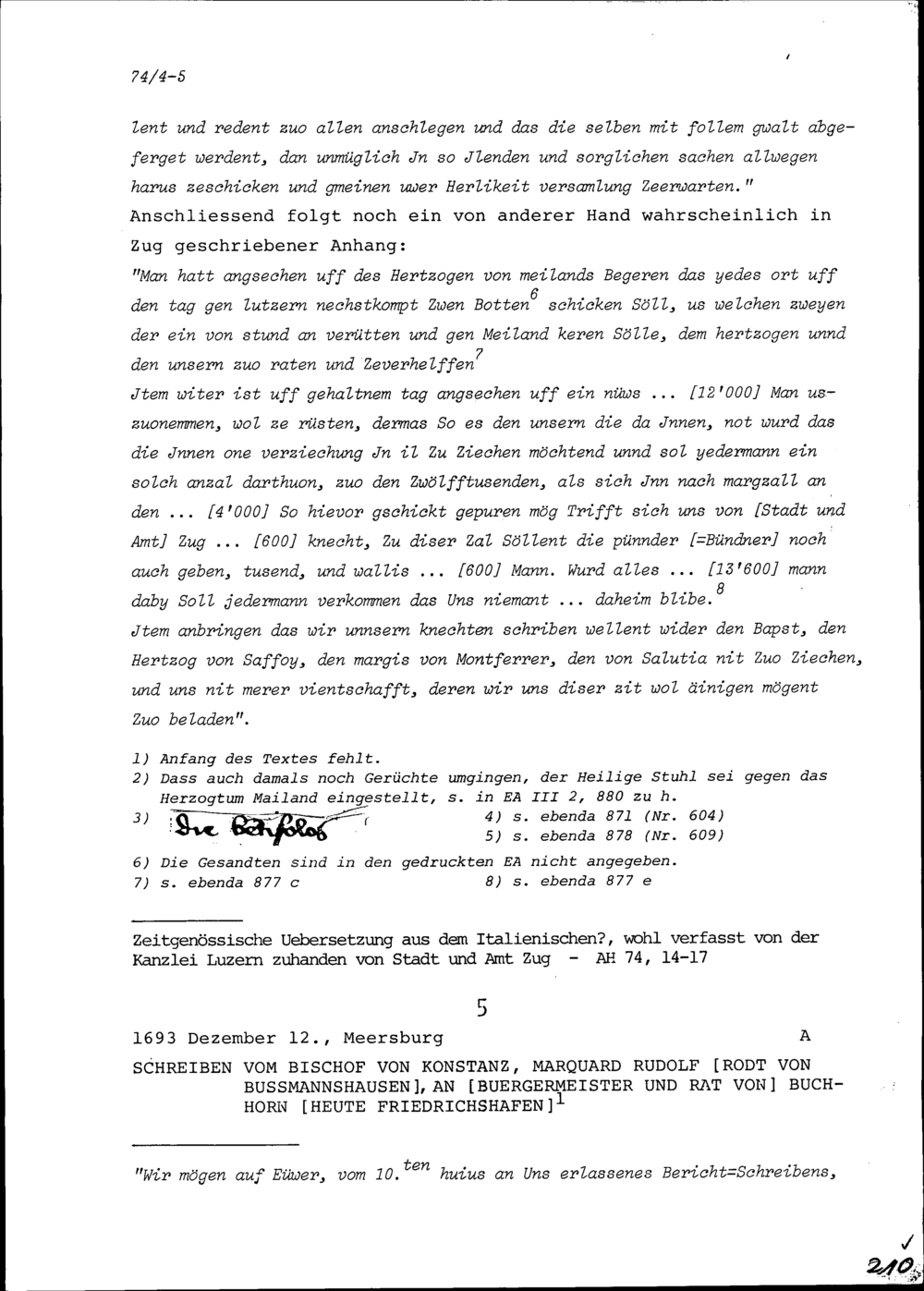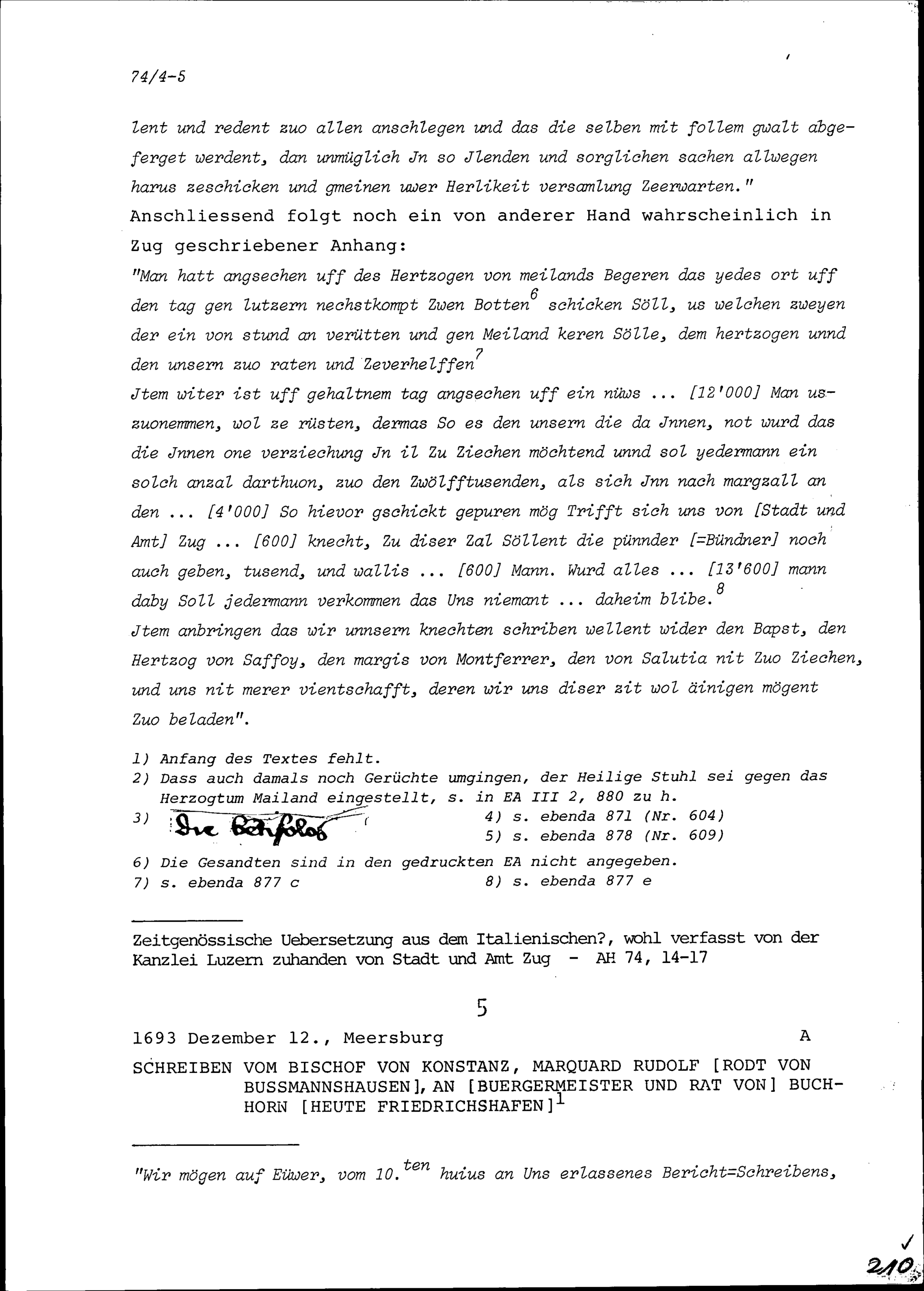Vortrag von Giovanni Colla und von Philipp Jakob, beide Gesandte des Herzogtums Mailand,...