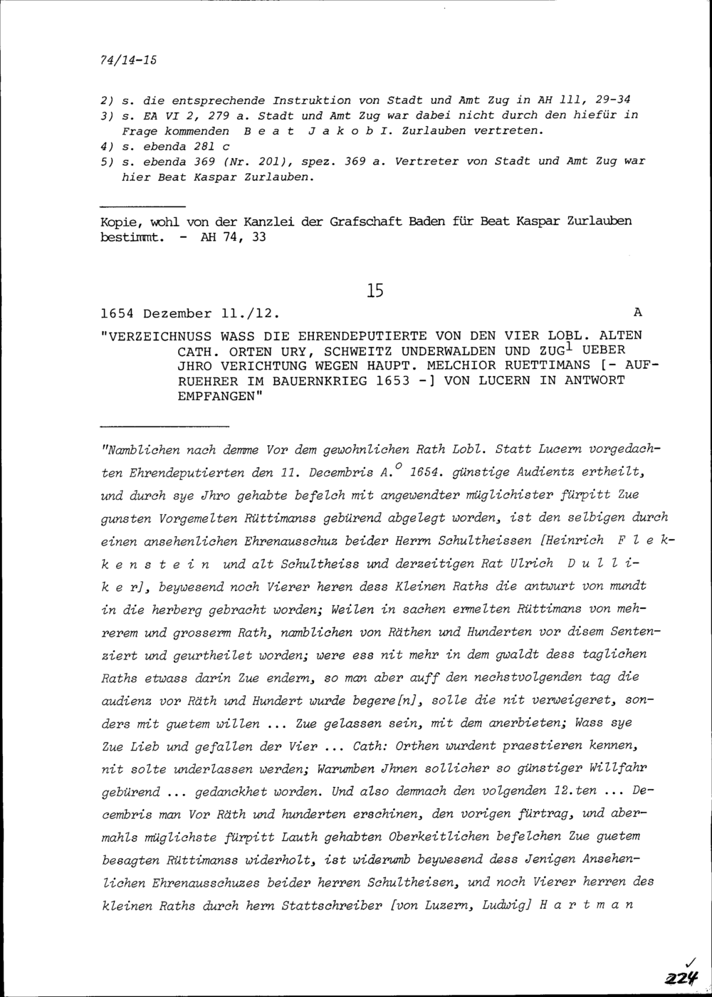 Entwurf einer eidgenössischen Gegenerklärung, verfasst anlässlich der am 4. März 1691 begonnenen Tagsatzung in Baden