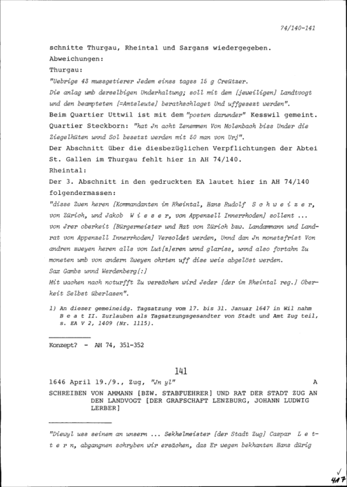 Defensionale von Wil: Abschnitte betreffend Thurgau, Rheintal und Sargans
