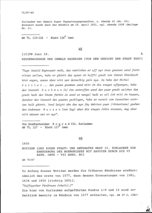 Notiz von Beat II. Zurlauben, Stadt- und Amtrat Zug, zur Erneuerung des Bündnisses...