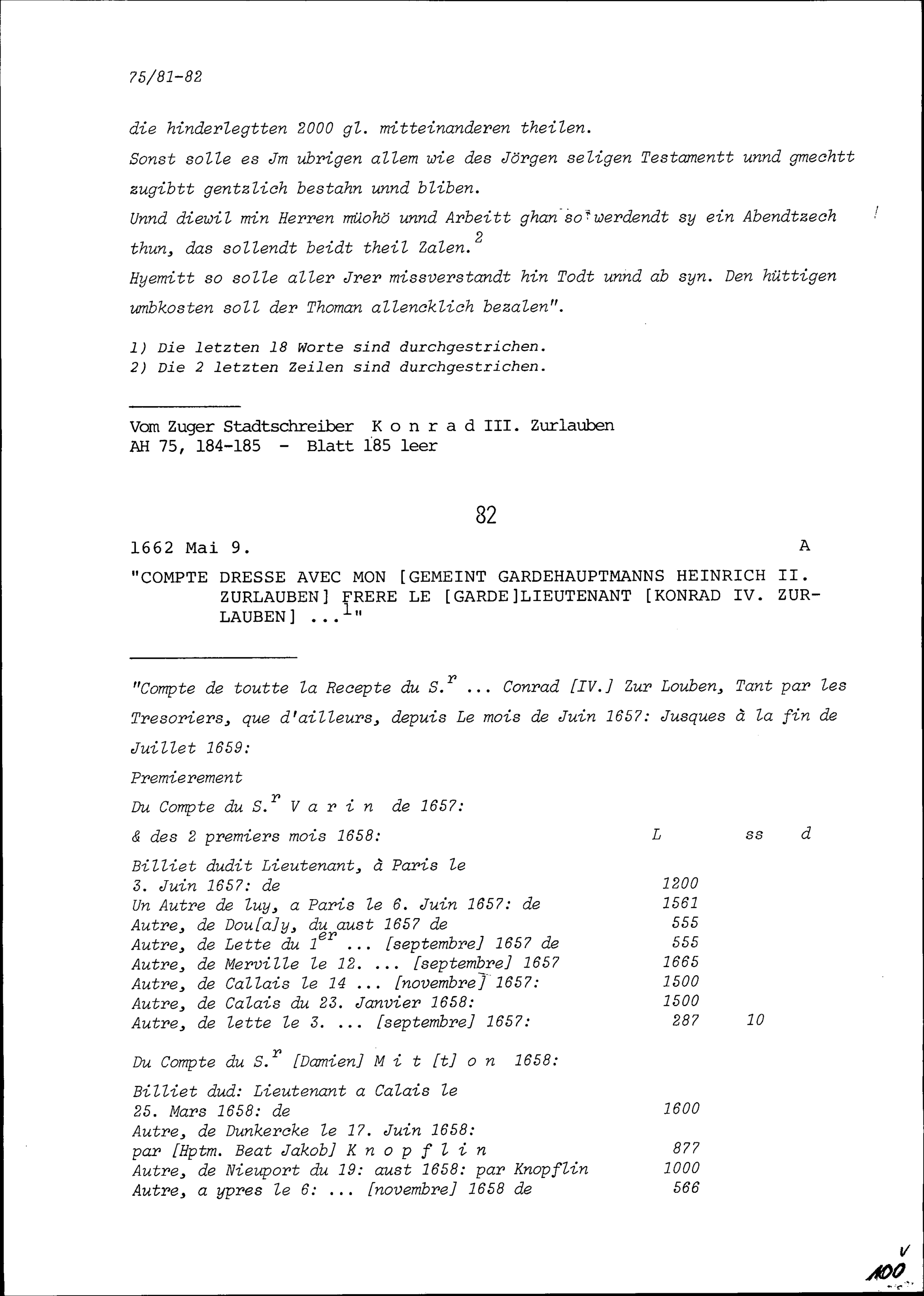 Ratsbeschluss des Ammanns und Rats der Stadt Zug bezüglich der Hinterlassenschaft...