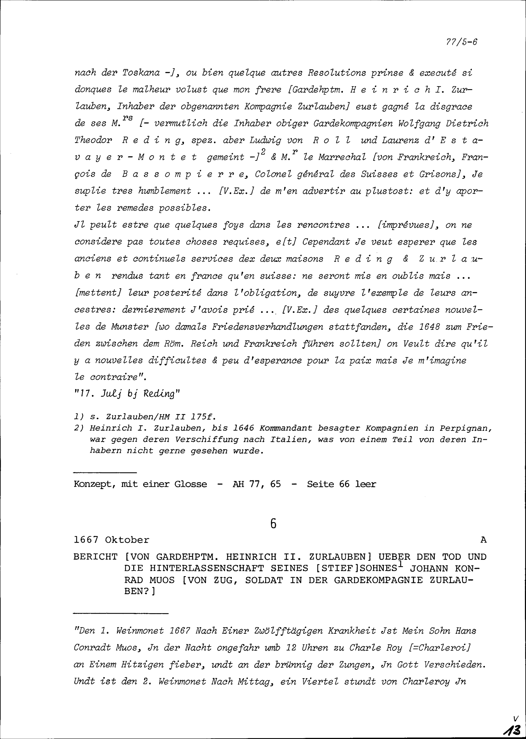 Schreiben von Beat II. Zurlauben, Stadt- und Amtrat Zug, an Jacques Le Fèvre de Caumartin, Ambassador von Frankreich