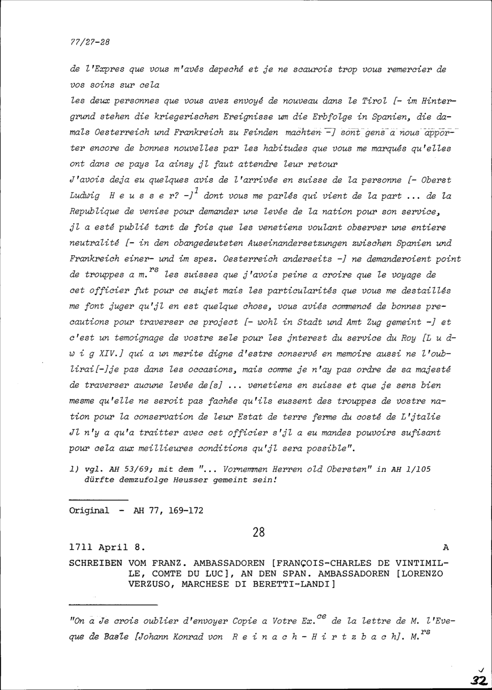 Schreiben von Roger Brûlart, Marquis de Puysieux, Ambassador von Frankreich, an Beat...
