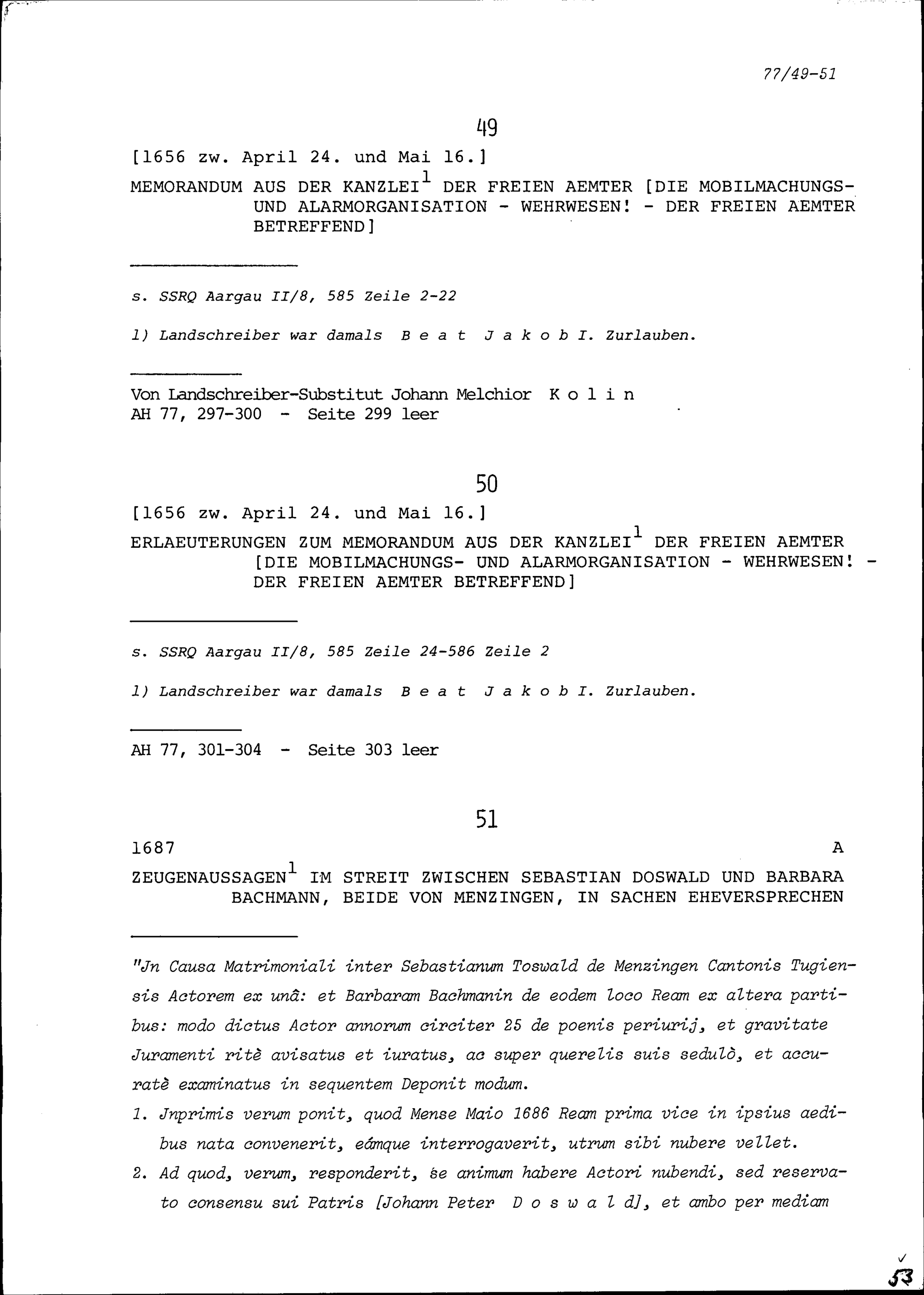Zeugenaussagen im Streit zwischen Sebastian Doswald und Barbara Bachmann, beide von Menzingen, in Sachen Eheversprechen