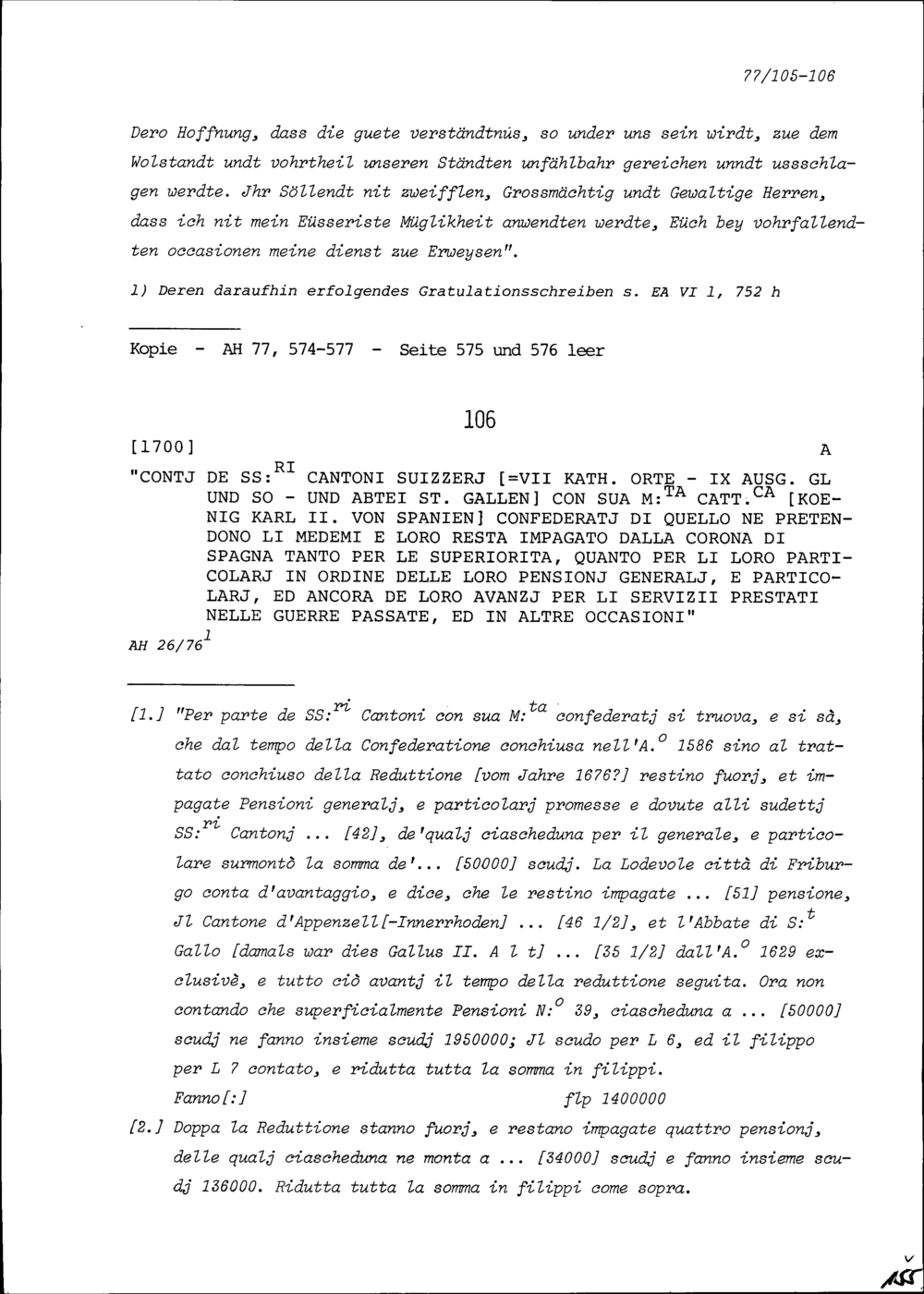 Schreiben von Charles-Paris, Duc d'Orléans-Longueville, Fürst von Neuenburg an die Dreizehn Orte