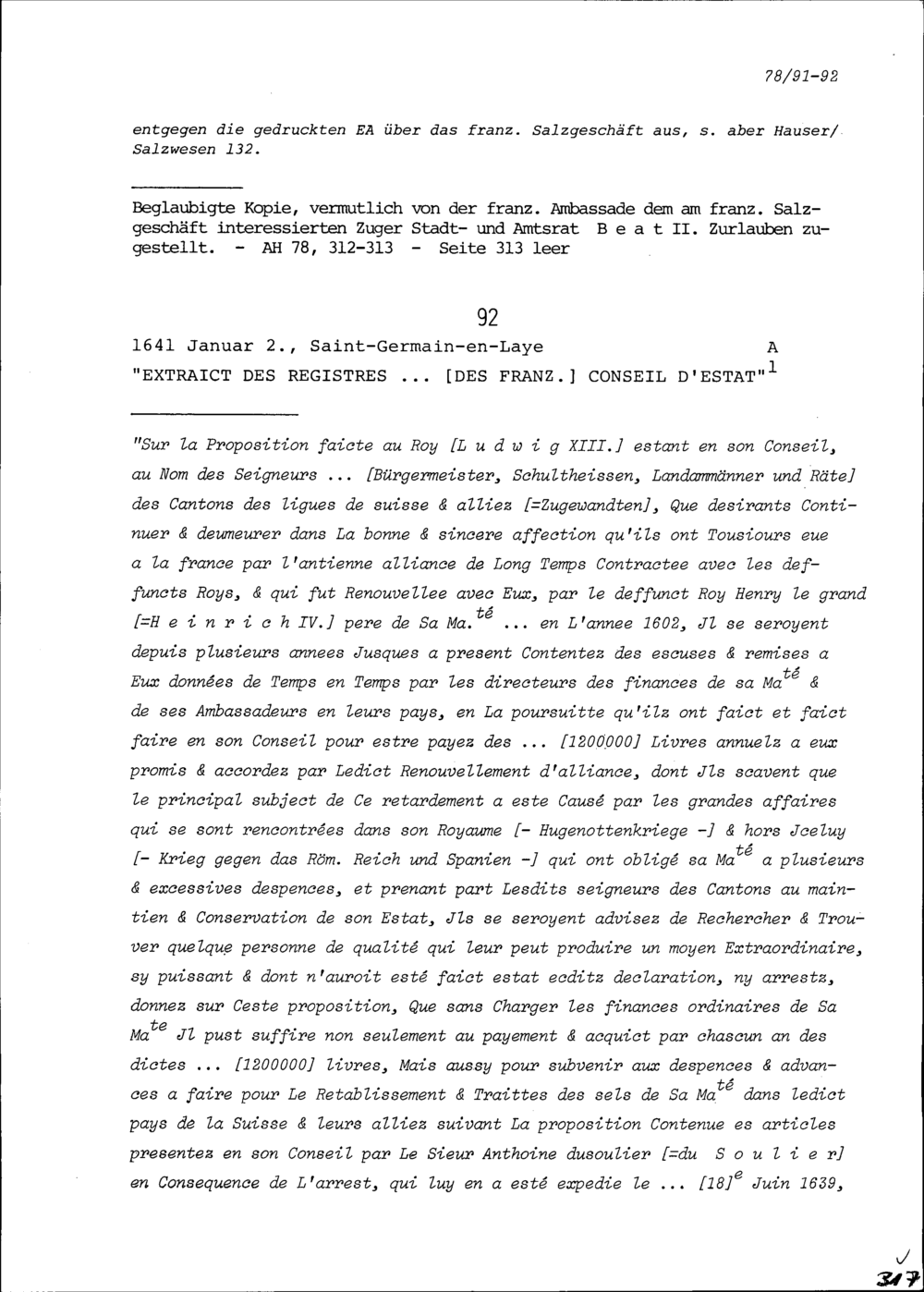 Schreiben von Ludwig XIV., König von Frankreich, an die Bürgermeister, Schultheissen, Landammänner, Räte und Gemeinden der Dreizehn Orte