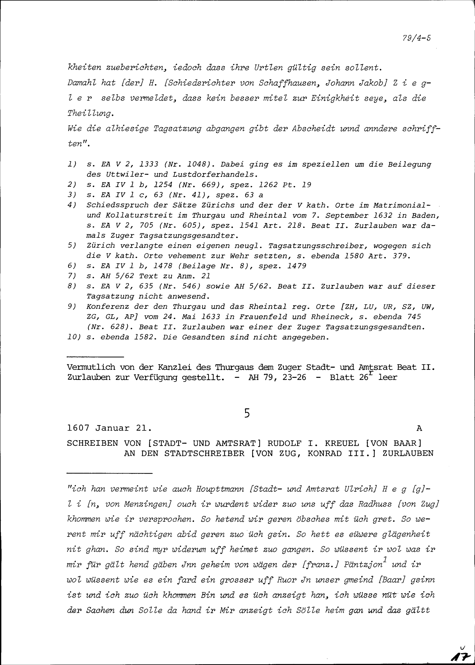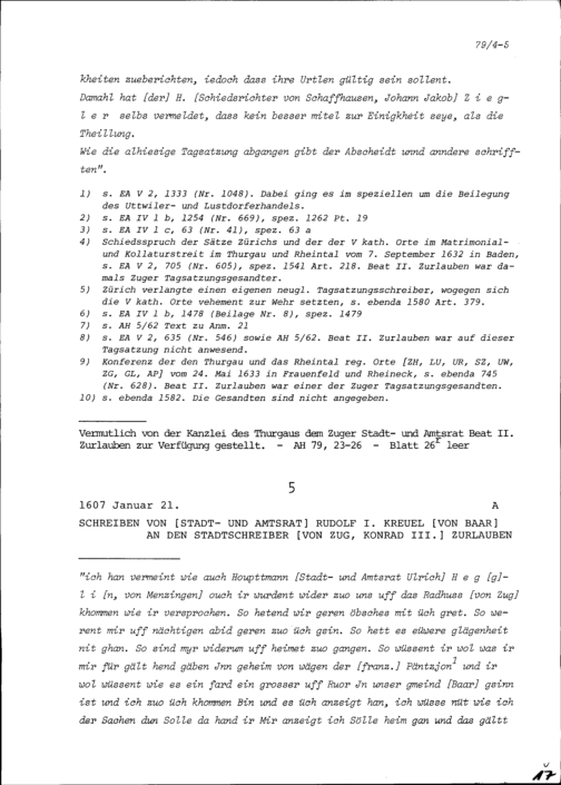 Bericht über die Verhandlungen anlässlich der Tagsatzung der Sieben im Thurgau regierenden Orte vom 8. November bis 2. Dezember 1644 in Frauenfeld