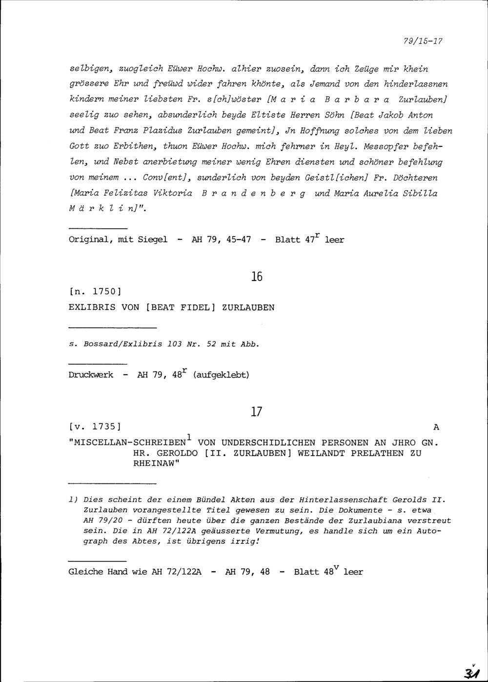 Schreiben verschiedener Personen an Gerold II. Zurlauben zu Rheinau