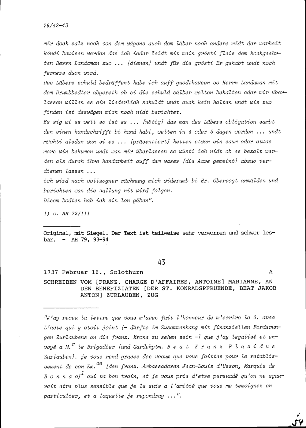Schreiben von Johann Adam Meyer, Müller, an Beat Jakob II. Zurlauben, Altammann und...