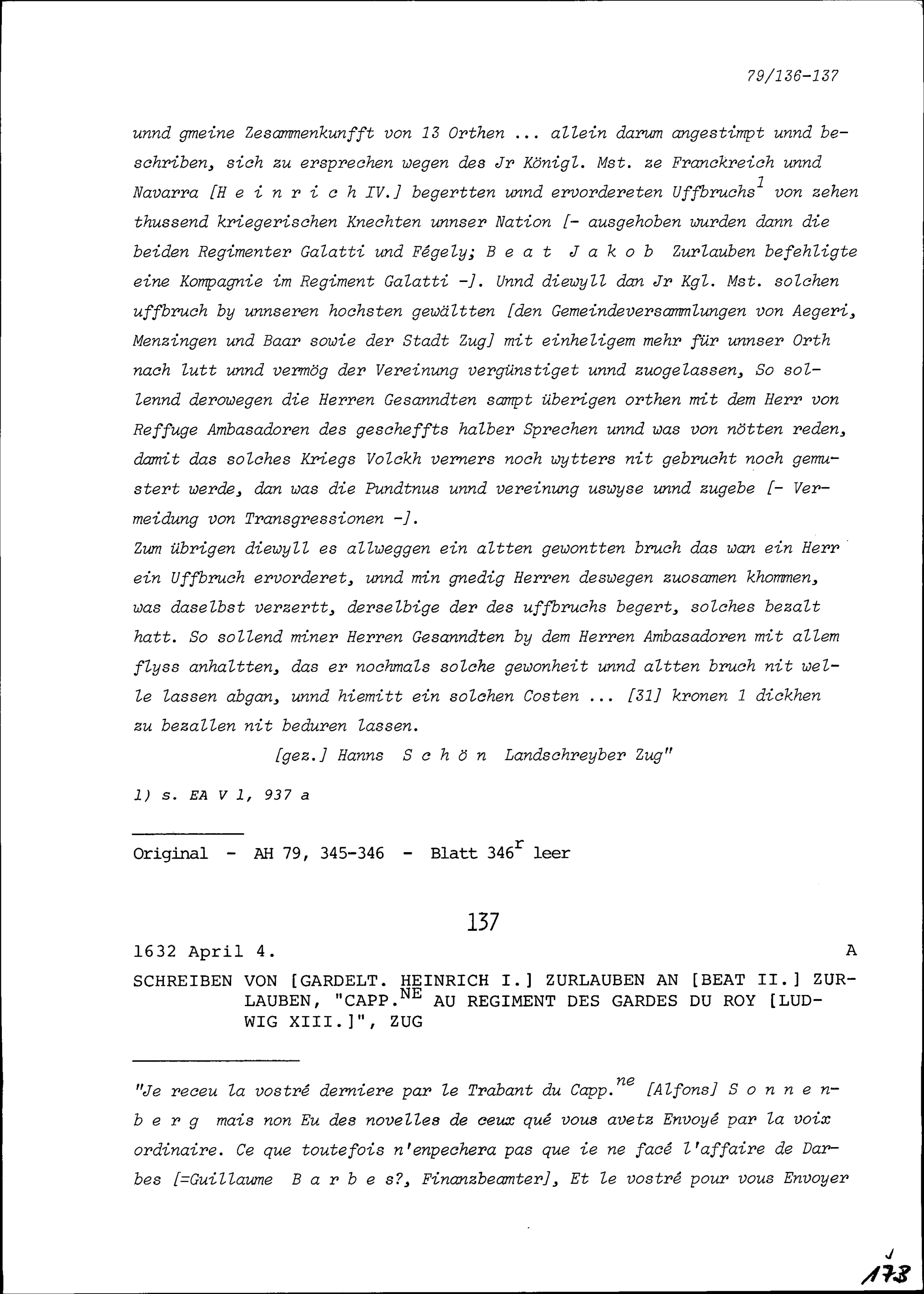 Instruktion von Stadt und Amt Zug auf die Tagsatzung vom 14. September 1609 in S...
