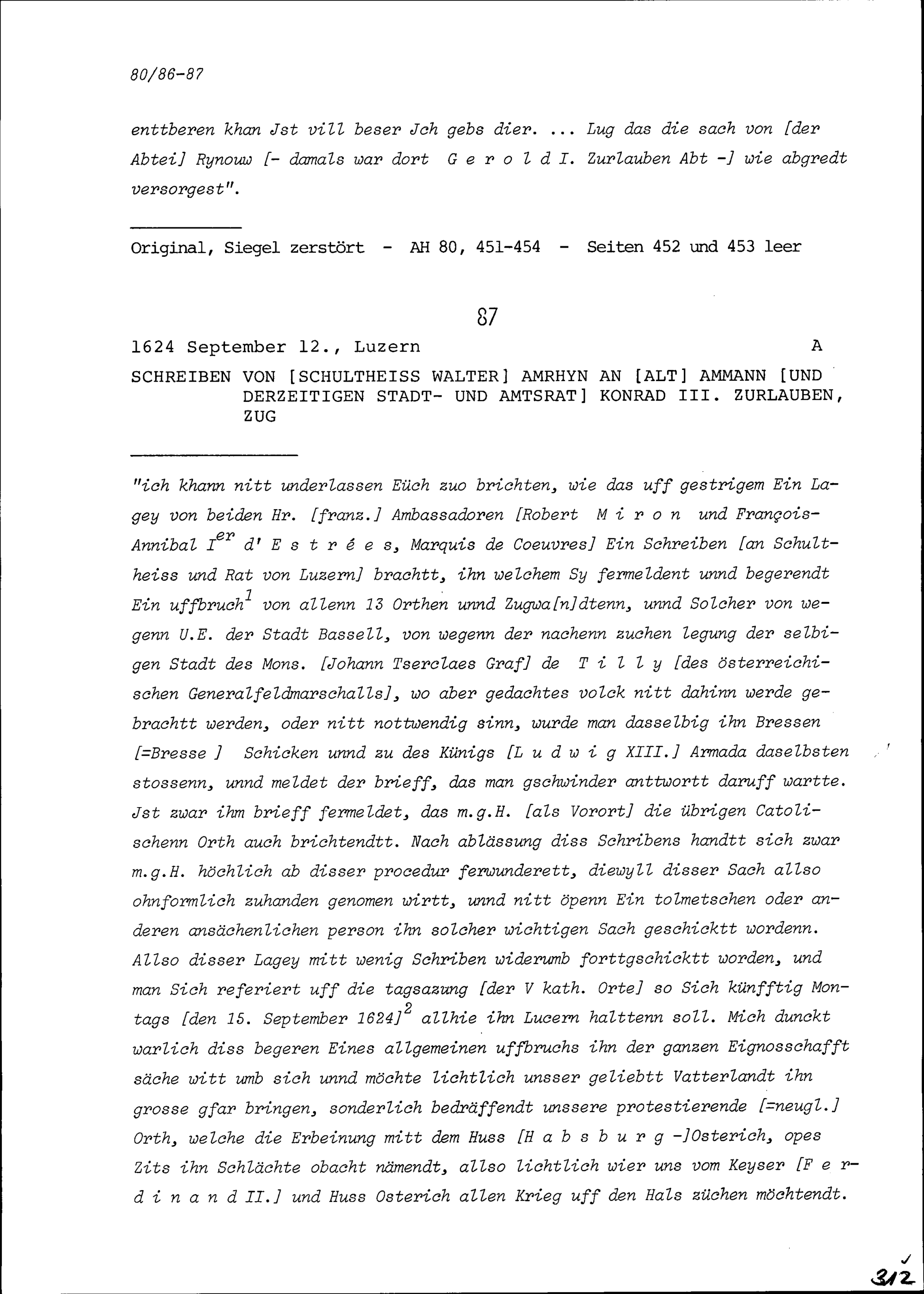 Schreiben von Konrad III. Zurlauben, Stadtschreiber, an Beat Jakob Zurlauben, Hauptmann, Zug