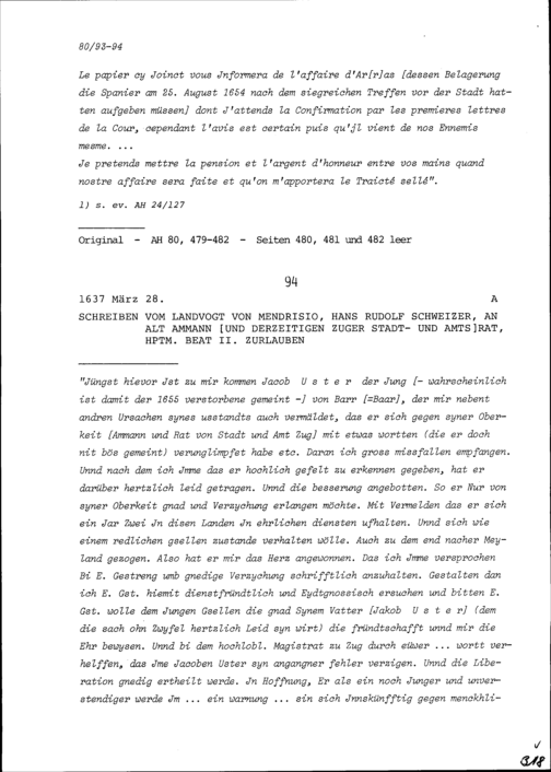 Schreiben von Jean de la Barde, Ambassador von Frankreich, an Beat II. Zurlauben,...