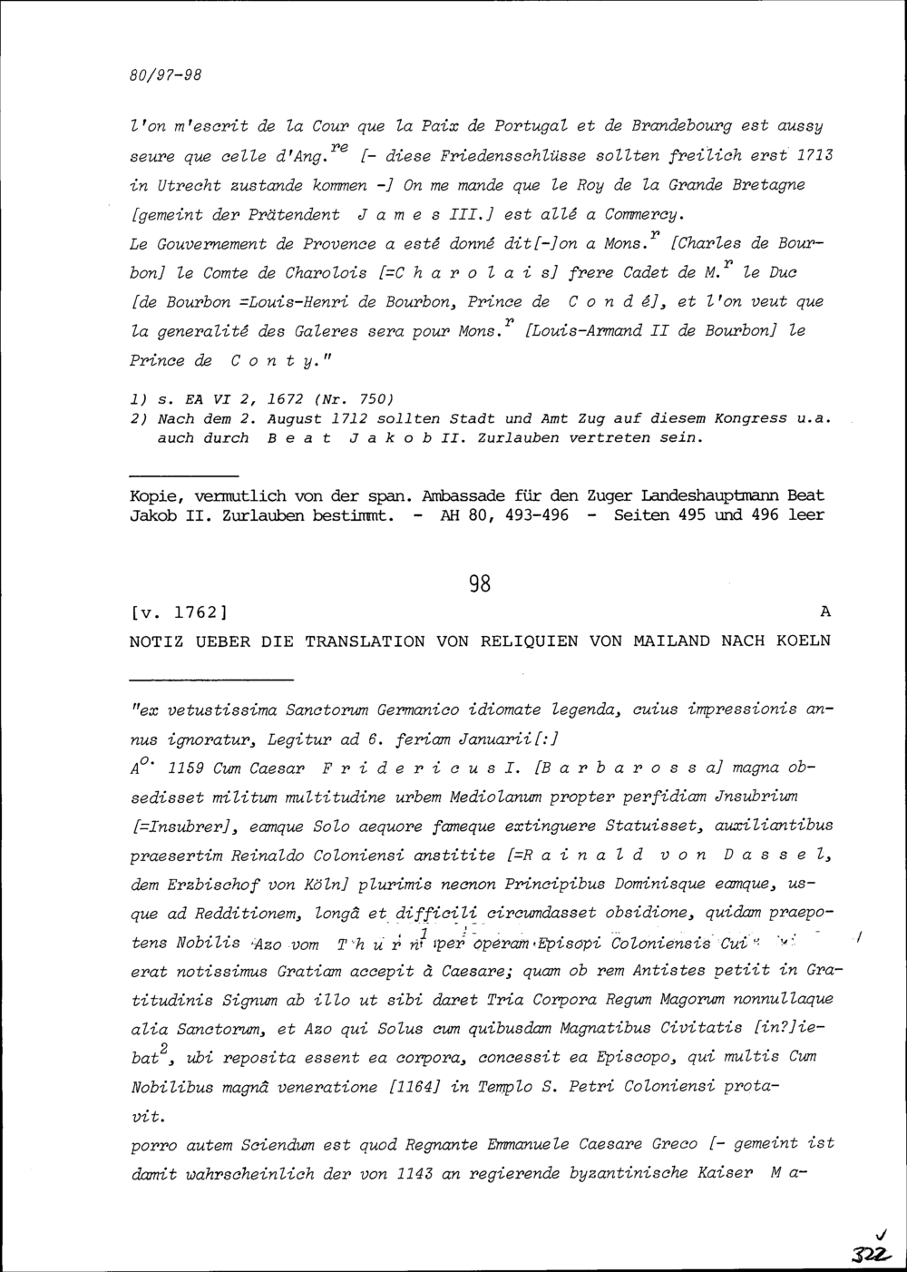 Schreiben von François-Charles de Vintimille, Graf du Luc, Ambassador von Frankreich, an Lorenzo Verzuso, Marchese di Beretti-Landi, Ambassador von Spanien