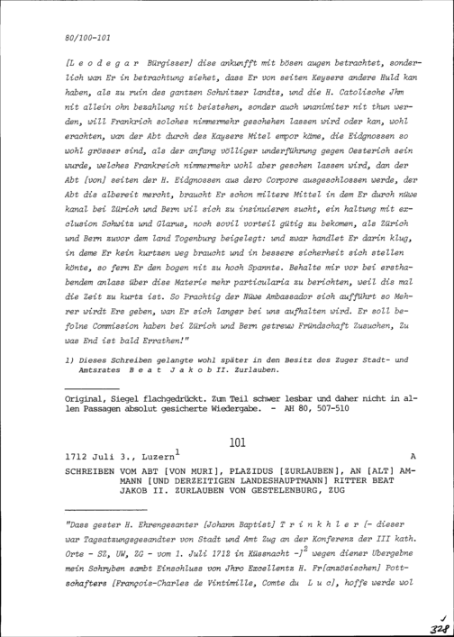 Schreiben von NN Hottinger an Heinrich Ludwig Muos, Altschultheiss und Altspitalpfleger, Zug