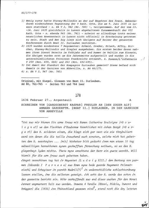 Schreiben von Jacques de Stavay-Mollondin, französischer Dolmetscher, an Beat II. Zurlauben, Altammann und Stadt- und Amtrat, Zug