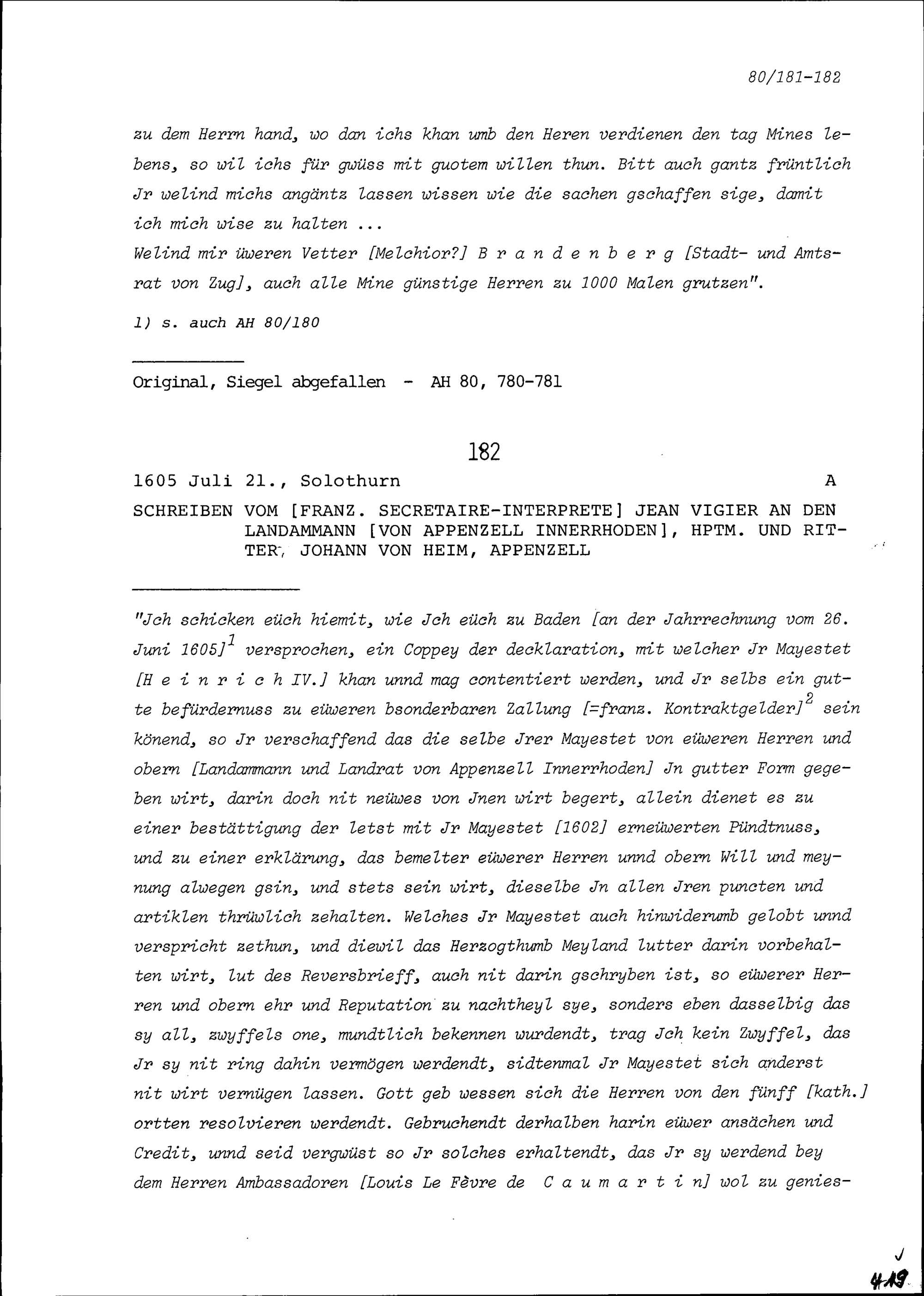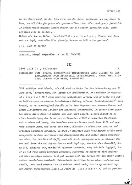 Schreiben von Johann von Heim, Bannerherr Appenzell-Innerrhoden, an Konrad III. Zurlauben,...