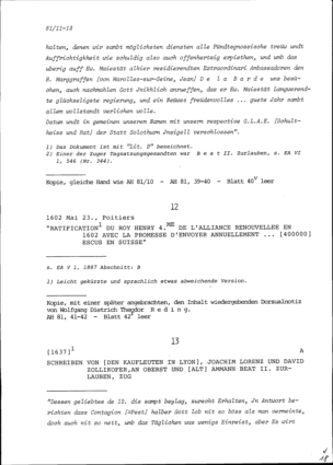 Schreiben der Bürgermeister, Schultheissen, Landammänner und Räte der Dreizehn und Zugewandten Orte auf der Tagsatzung in Solothurn an Ludwig XIV., König von Frankreich