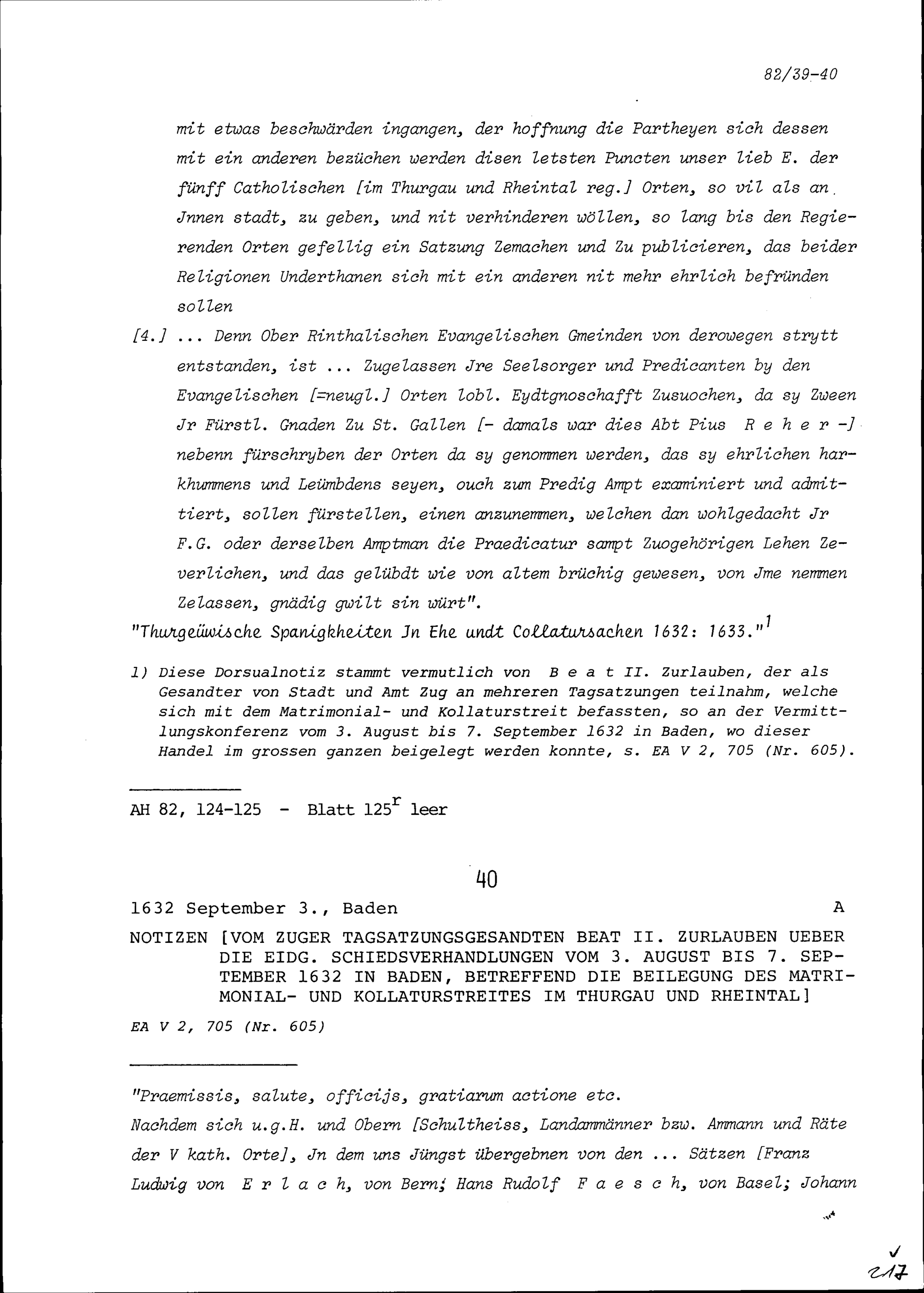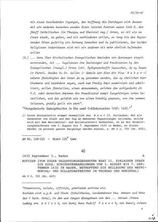 Vorschläge, wie der Matrimonial- und Kollaturstreit im Thurgau und Rheintal beigelegt werden könnte, ausgearbeitet von Johann Daniel von Montenach von Freiburg und Johann Jakob vom Staal von Solothurn