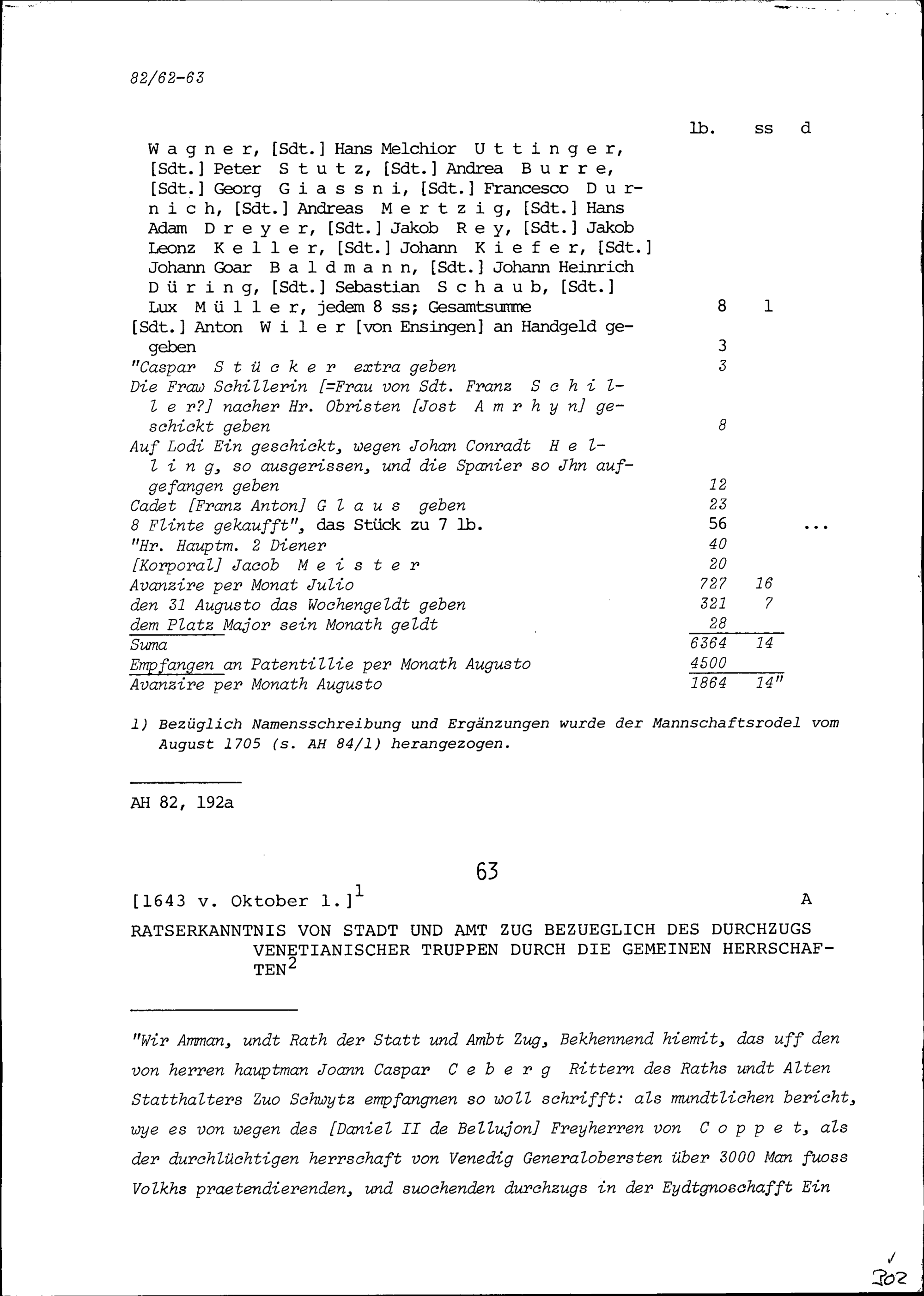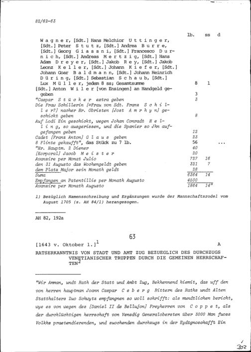 Abrechnung der Kompanie von Beat Jakob II. Zurlauben und von Christoph I. Andermatt...