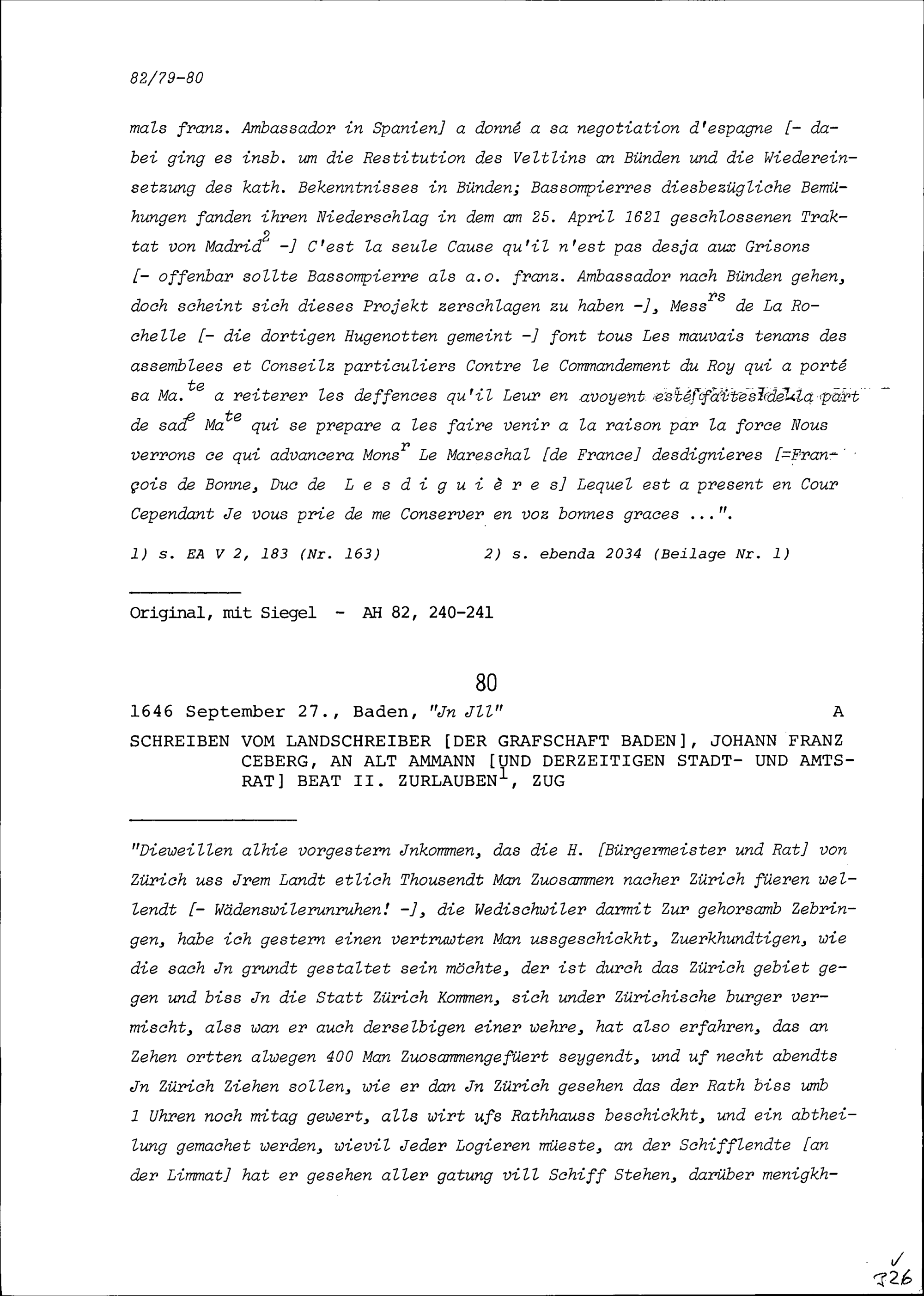 Schreiben von Robert Miron, Ambassador von Frankreich, an Konrad III. Zurlauben,...