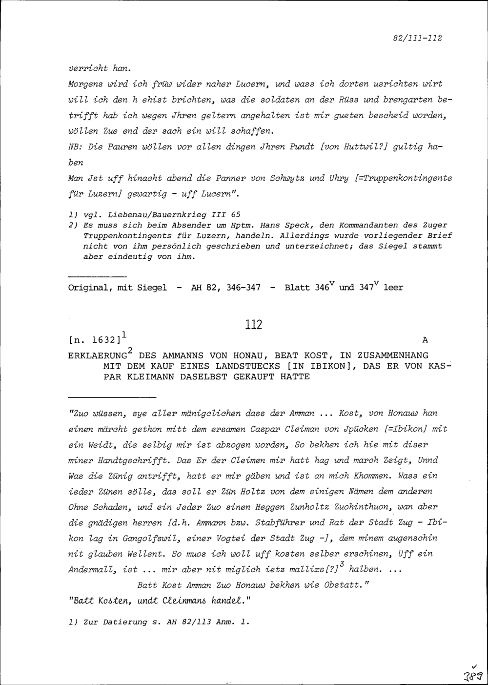 Schreiben von Hans Speck an Beat II. Zurlauben, Hauptmann und Stadt- und Amtrat,...