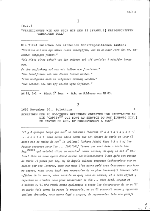 Schreiben der Obersten und Hauptleute in Solothurn an Heinrich II. Zurlauben, Gardehauptmann