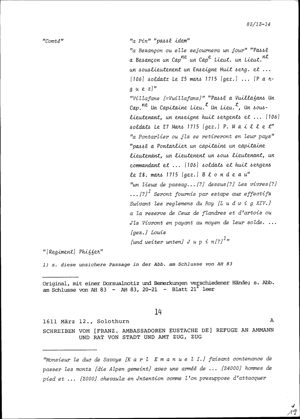 Marschbefehl für die Kompanie von Beat Jakob II. Zurlauben, Hauptmann, zur Rückk...