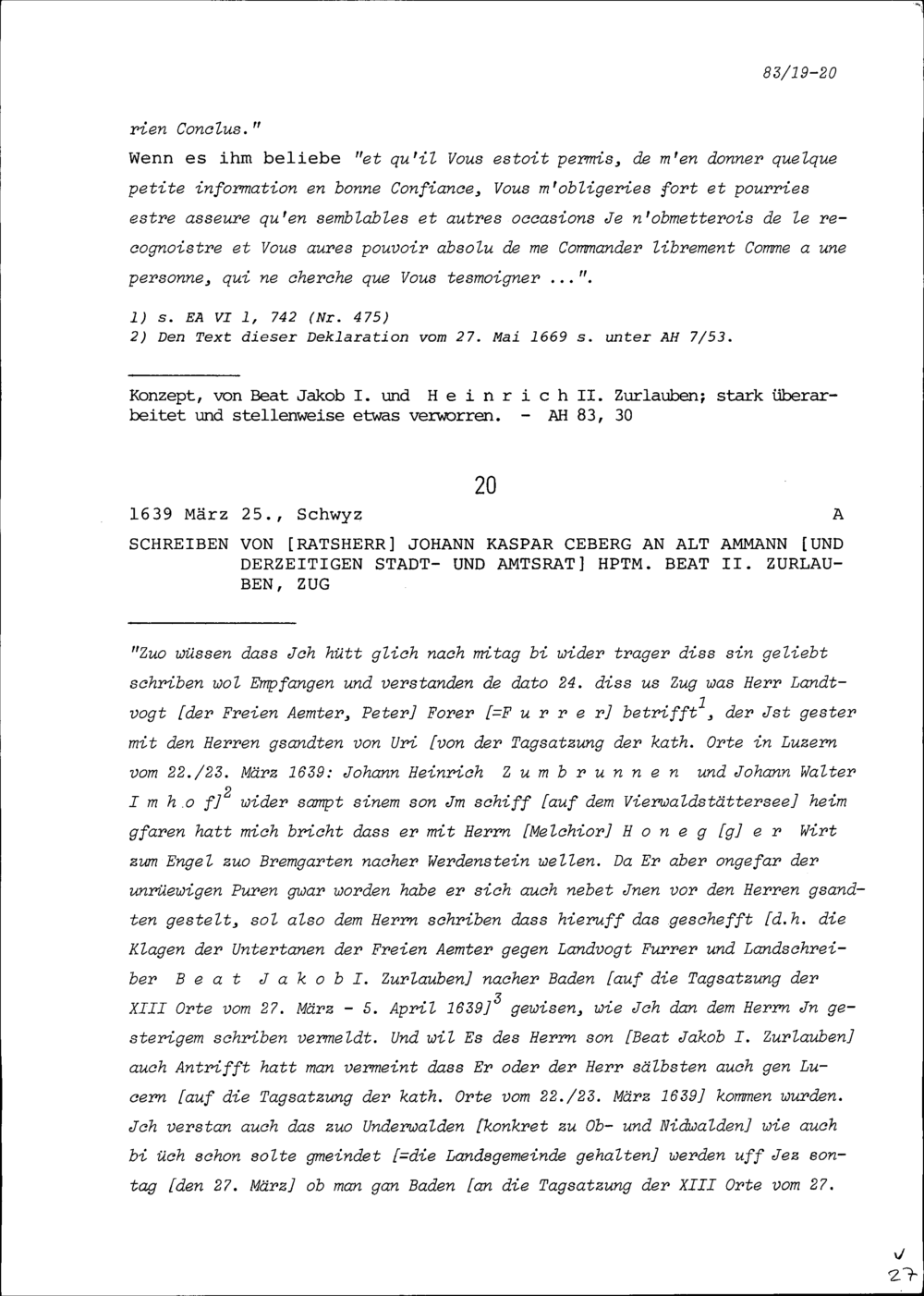 Schreiben von Beat Jakob I. Zurlauben, Statthalter Zug, an Simon Petermann Meyer,...
