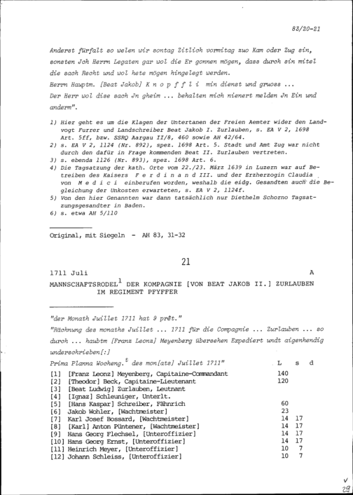Schreiben von Johann Kaspar Ceberg, Ratsherr, an Beat II. Zurlauben, Hauptmann und Stadt- und Amtrat, Zug