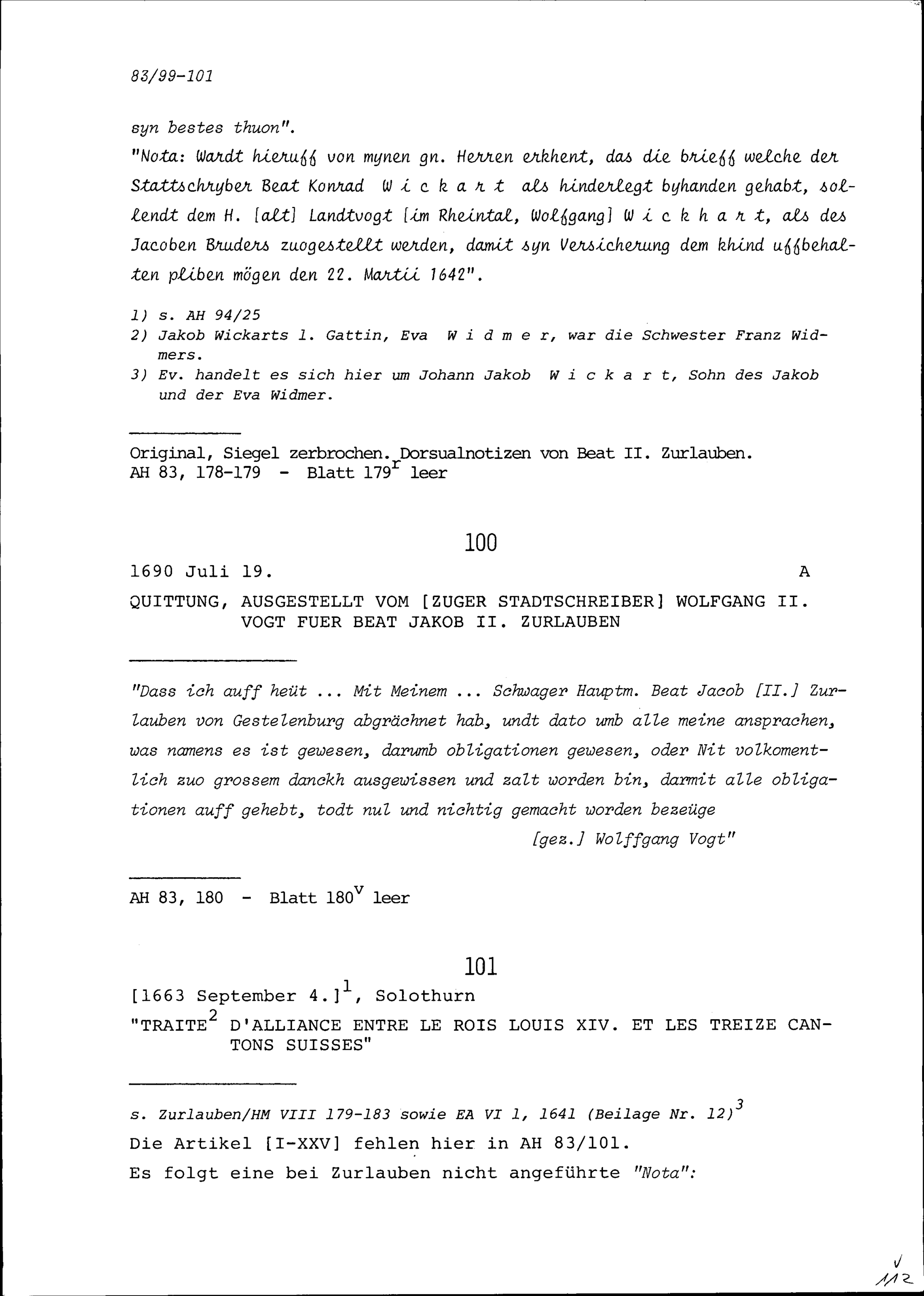 Bündnisvertrag zwischen Ludwig XIV., König von Frankreich, und den Dreizehn Orte