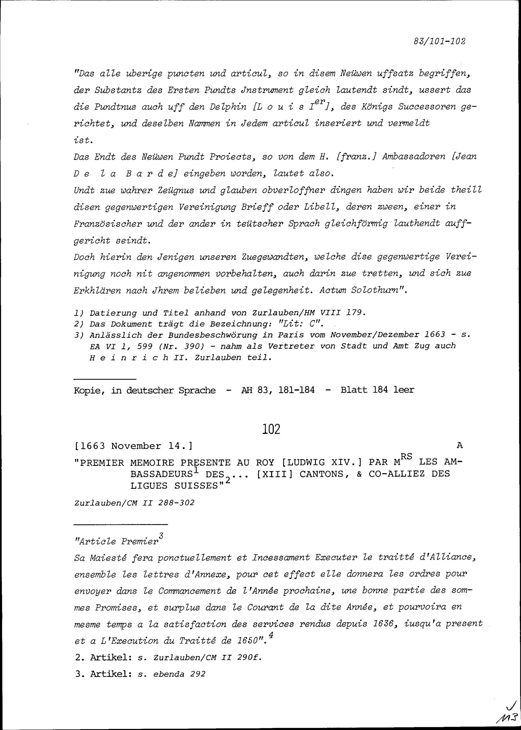 Bündnisvertrag zwischen Ludwig XIV., König von Frankreich, und den Dreizehn Orte