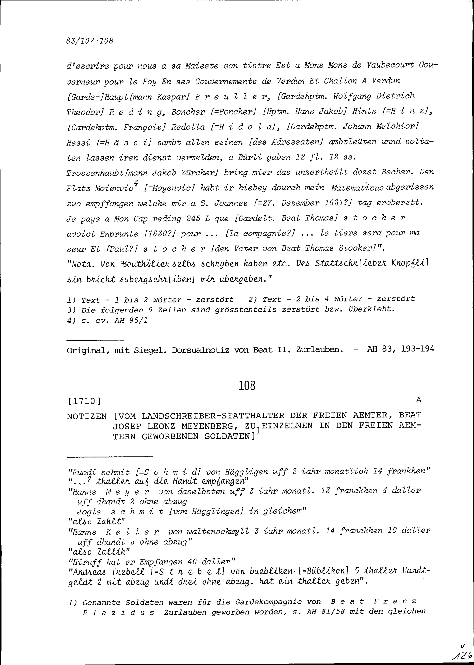 Schreiben von Heinrich I. Zurlauben, Gardeleutnant, an Beat II. Zurlauben, Gardehauptmann und Stadt- und Amtrat, Zug